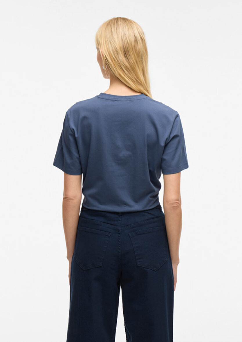 Klassisk t-shirt i modellen Vinora fra VILA. Den blå t-shirts enkle design gør at den nemt kan styles til alverdens underdele og er altid et must-have til basis garderoben.