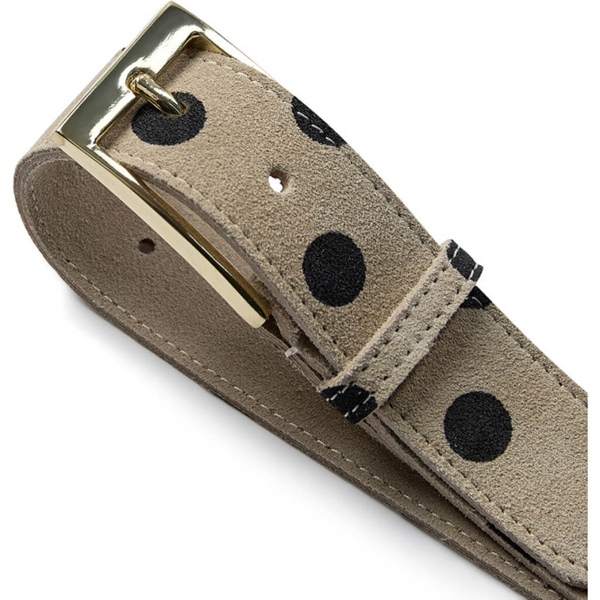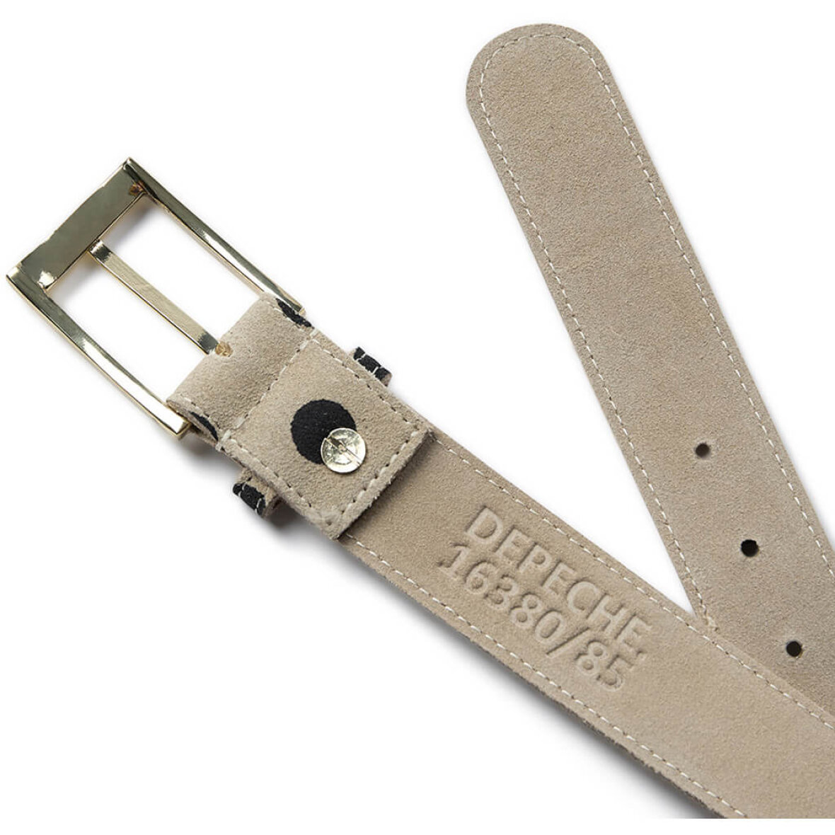 Trendy jeans bælte fra Depeche. Bæltet er fremstillet i en lækker blød læder kvalitet i en skøn lys sandfarve med sorte prikker i designet.