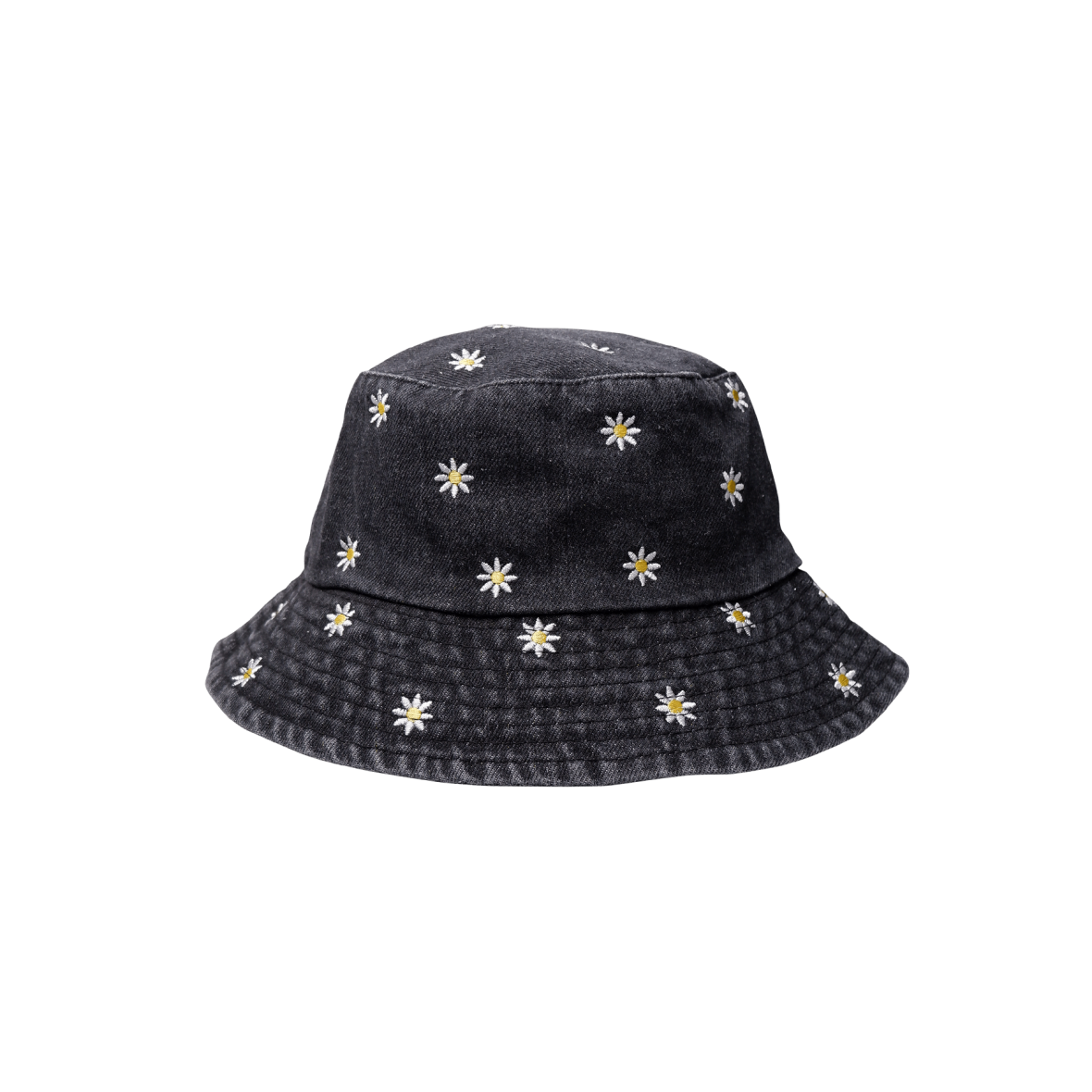 Sød bøllehat i sort denim fra Black Colour. Bøllehatten er flot dekoreret med broderet blomster.