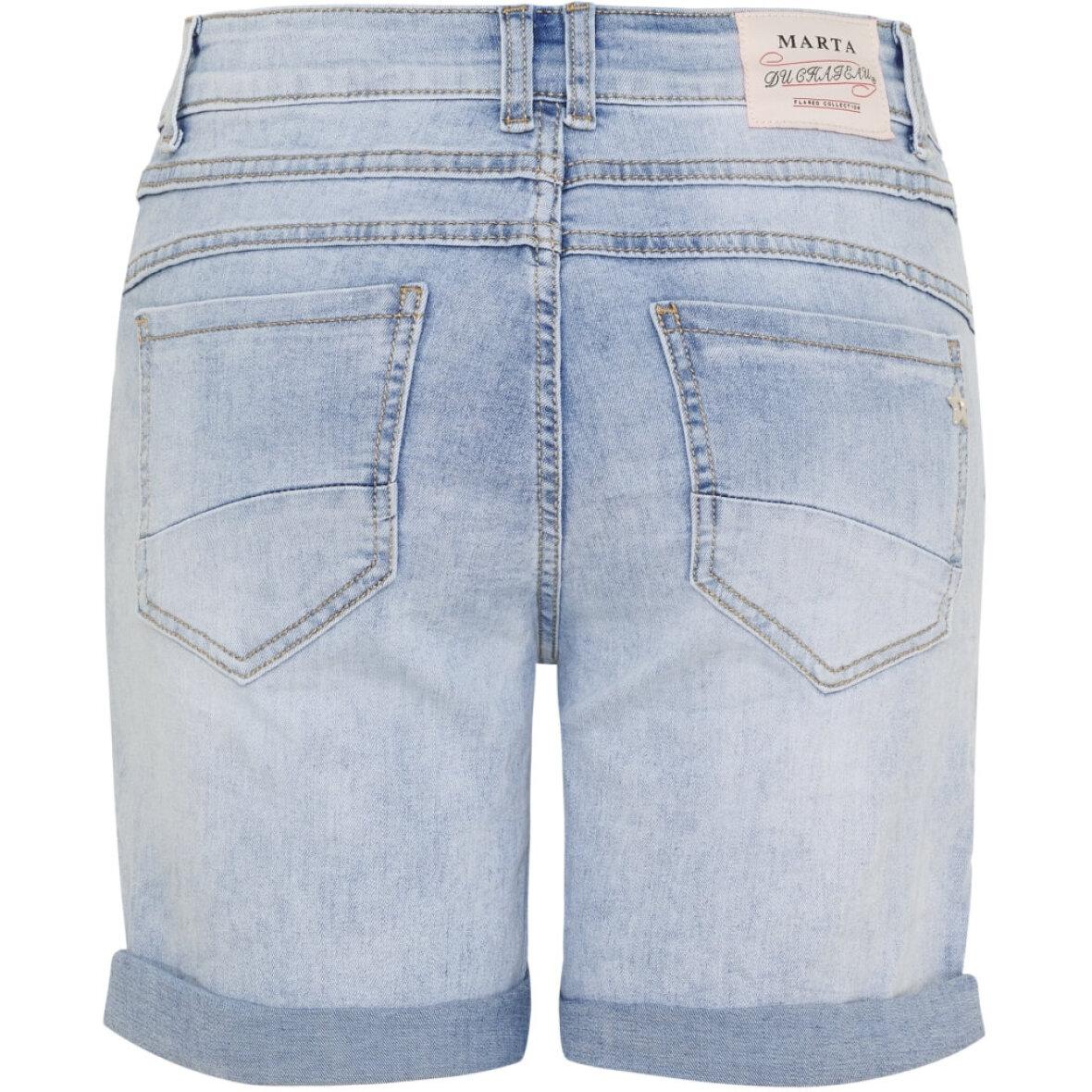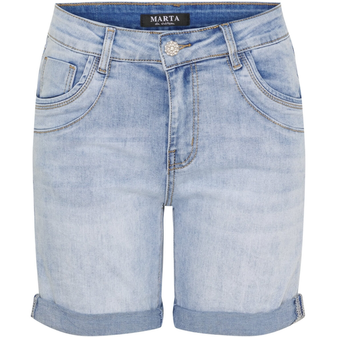 Smarte shorts i denim fra Marta Du Chateau. Shortsene er lavet i et flot og enkelt design i en lys denim. Shortsene er med en markant knap foran med bling effekt.