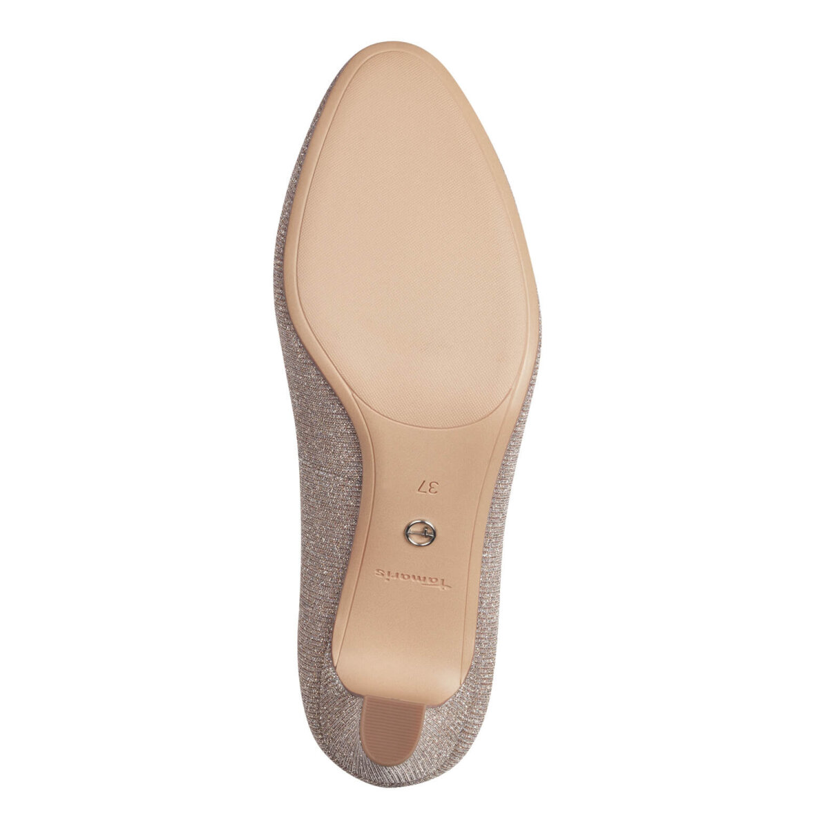 Elegante høje sko fra Tamaris. Skoens blokhæk på 6 cm giver dig masser af komfort og et feminint løft, mens den bløde Touch it dæksål indeni i skoen, tilpasser sig din fod. Denne klassiske model fra Tamaris har en god pasform og rund snude. Overdelen er udført i tekstil med glimmer og glam look, som kan være med til at give et glamourøst look til outfittet. Uanset om du skal til bryllup, på kontoret, sommerfester eller højtider som jul og nytår - så bringer denne flotte model et tidsløst vintage-præg.