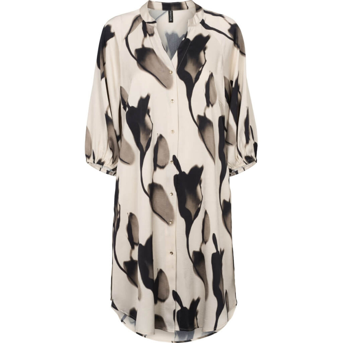 Smuk lys midi-kjole fra Prepair i modellen Siva. Kjolen er lavet i et smukt grafisk print.