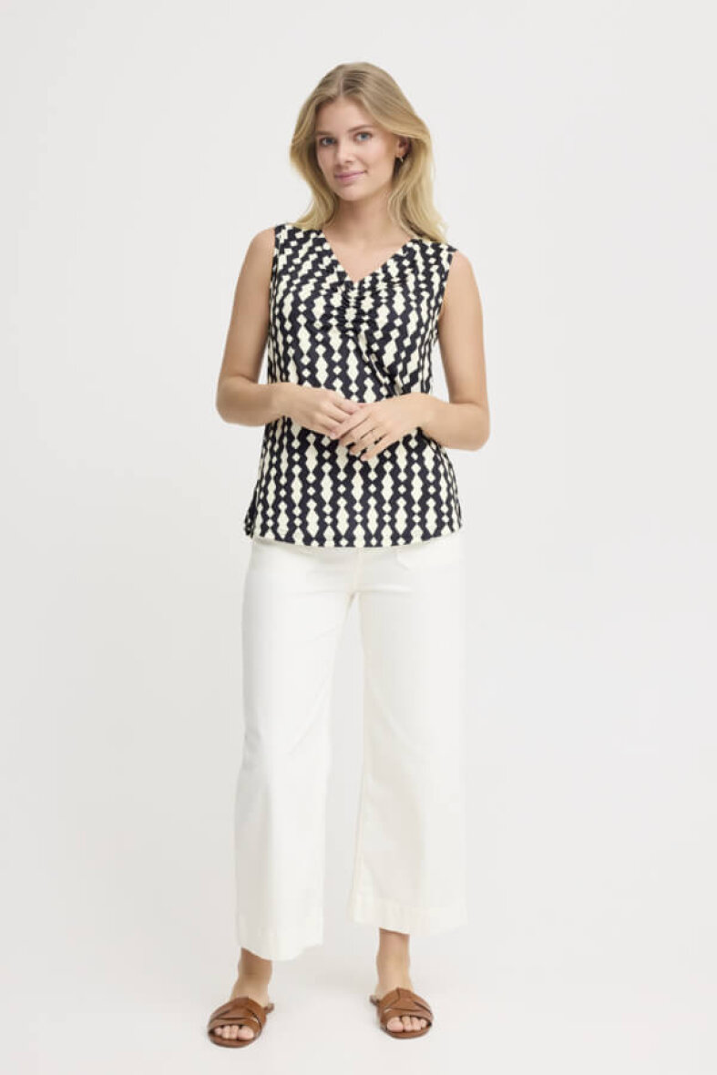 Toppen FRSEEN fra Fransa er lavet i et fint abstrakt mønster i sort/off white farver. Et skønt mønster som kan give et pift til outfittet.