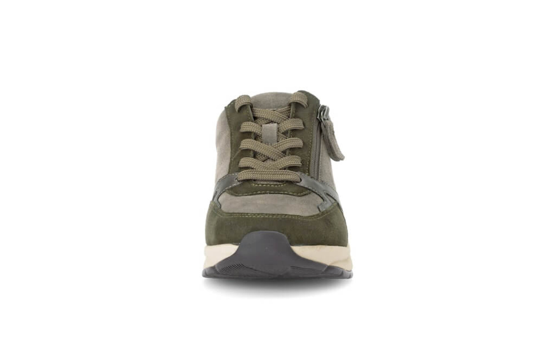 Rollingsoft sneakers i en skønt mix af grønne og grå nuancer. Disse sneakers er lavet i et mix af nubuck skind og glat skind i forskellige toner, hvilket skaber et flot spil i overdelen. Den beige farvet ydersål med 1,5 cm kilehæl giver et diskret løft og god stabilitet. Med rollingsoft-teknologi får du stødabsorbering og en fleksibel sål, der støtter fodens naturlige bevægelser – ideel til dig, der er aktiv i hverdagen. Dette er behjælpeligt til at aflaste både ben og ryg.