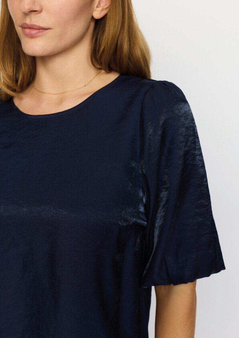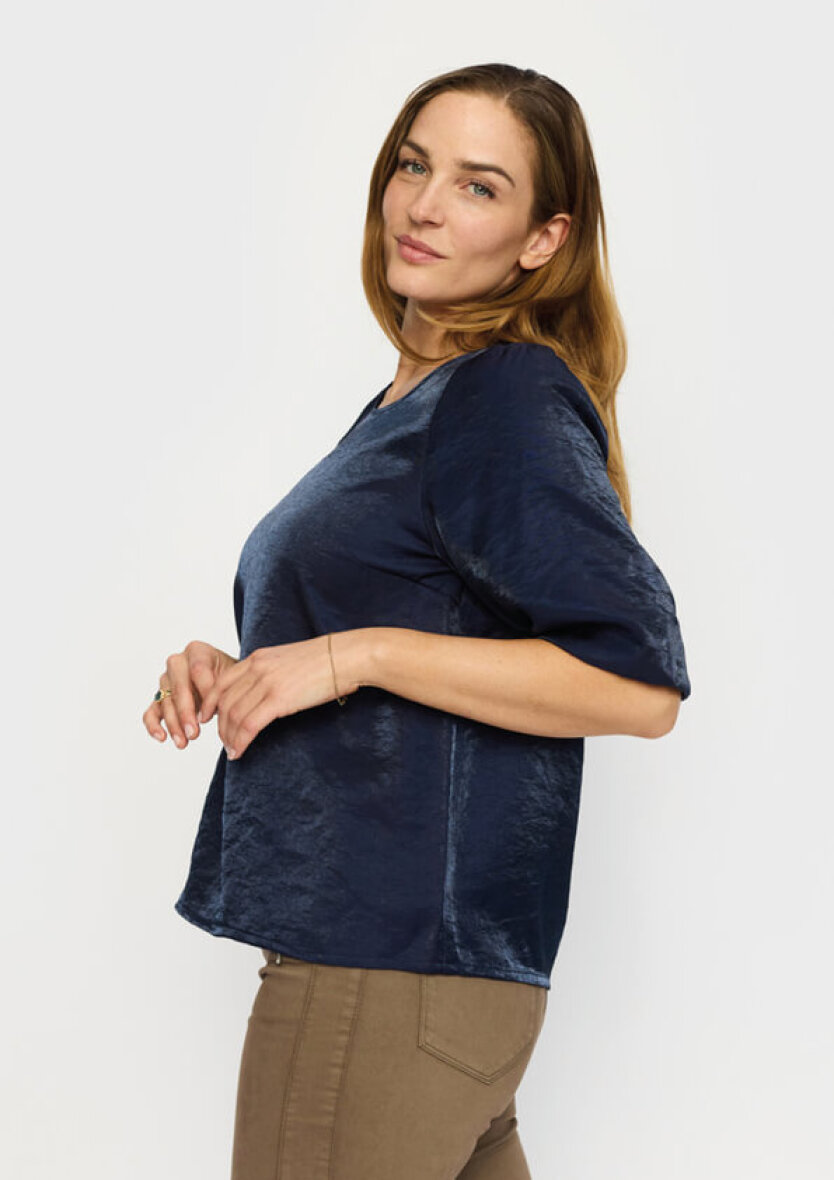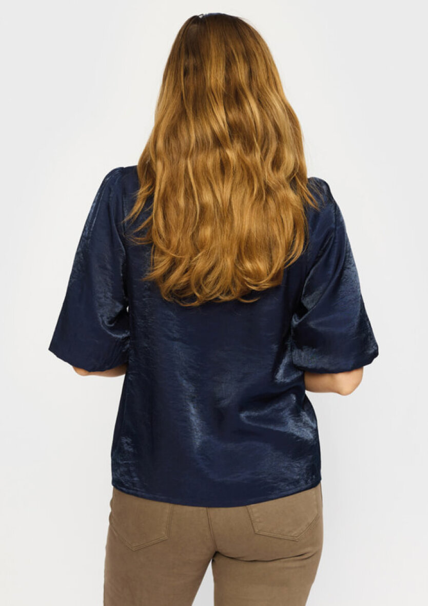 Pæn og sofistikeret bluse i en flot navy blå farve med shine effekt fra 2-biz.
