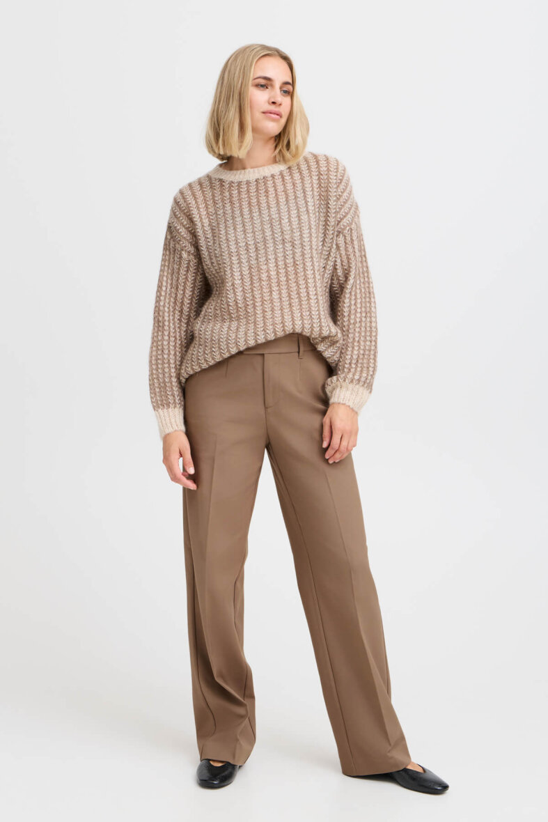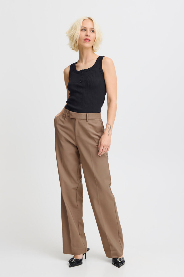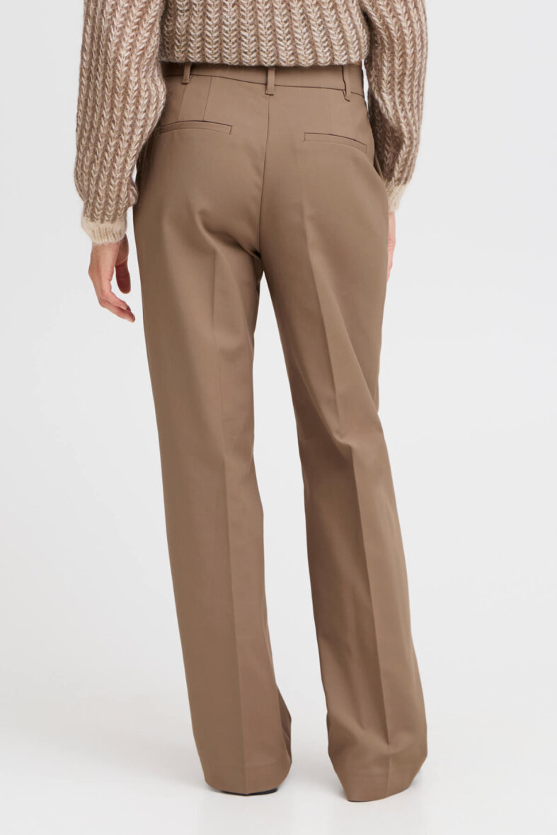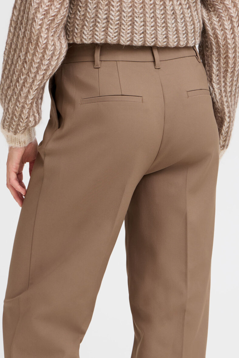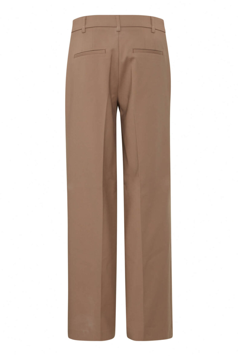 De smarte højtaljede er i en moderne lysebrun farve (valnød), som er nem at style med overdele i diverse farver og prints og passer perfekt i sæsonen farvepalet.
