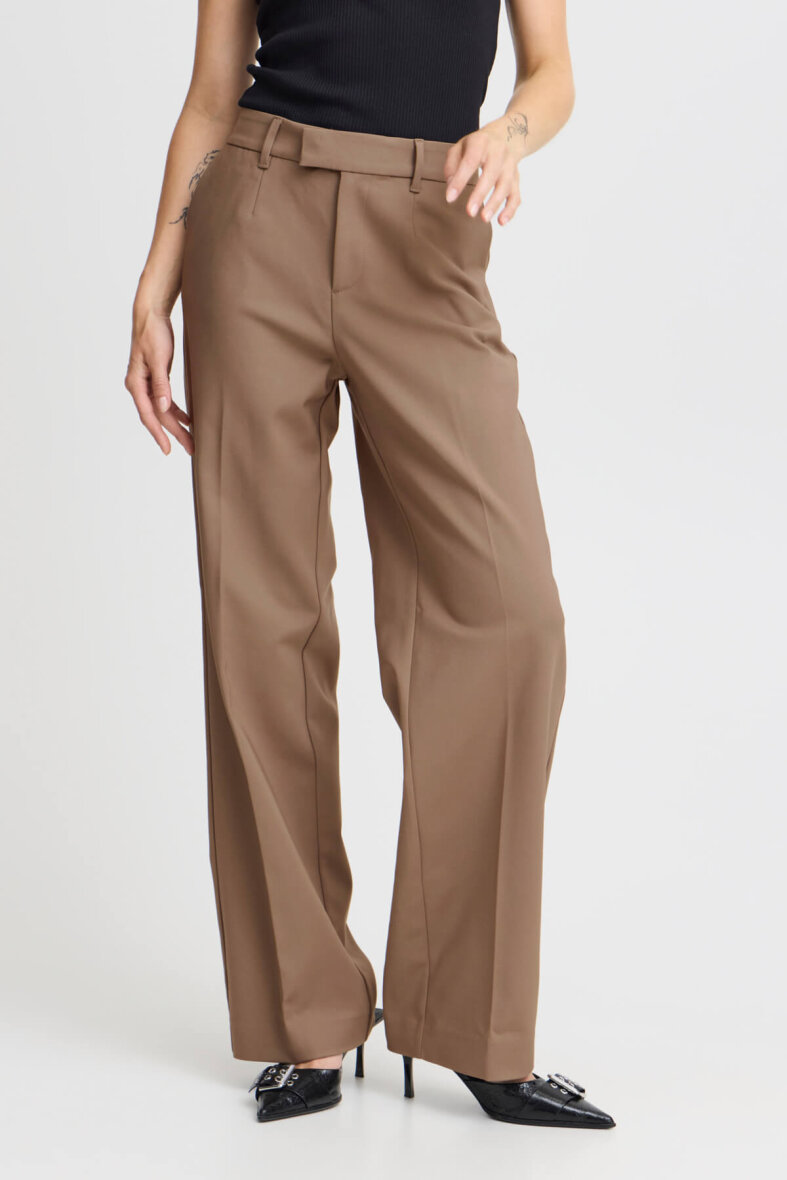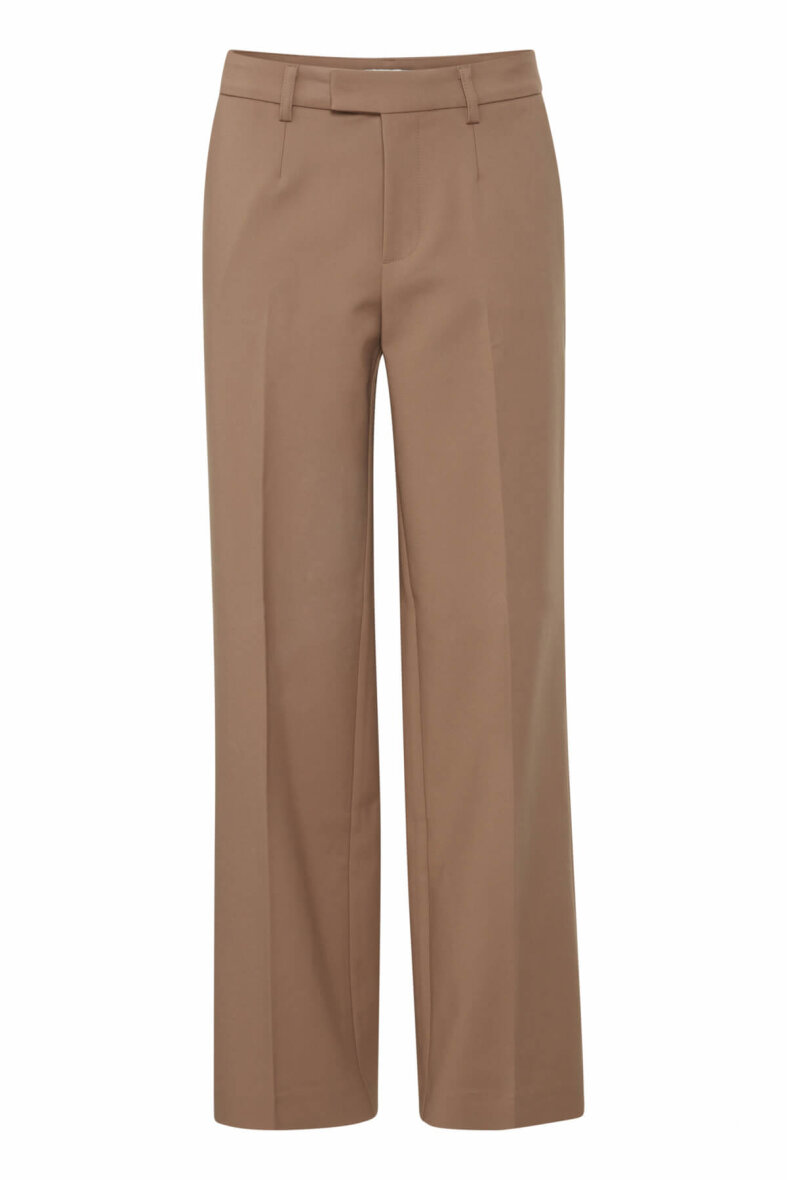 Bindy buksen er lavet i et enkelt og stilfuldt design med hængte luk samt lynlås luk, så der er ingen synlige knapper, hvilket giver et elegant look. Buksen er med skrålommer, pynte baglommer og bæltestropper.