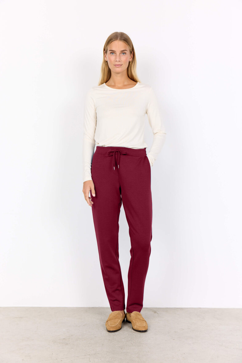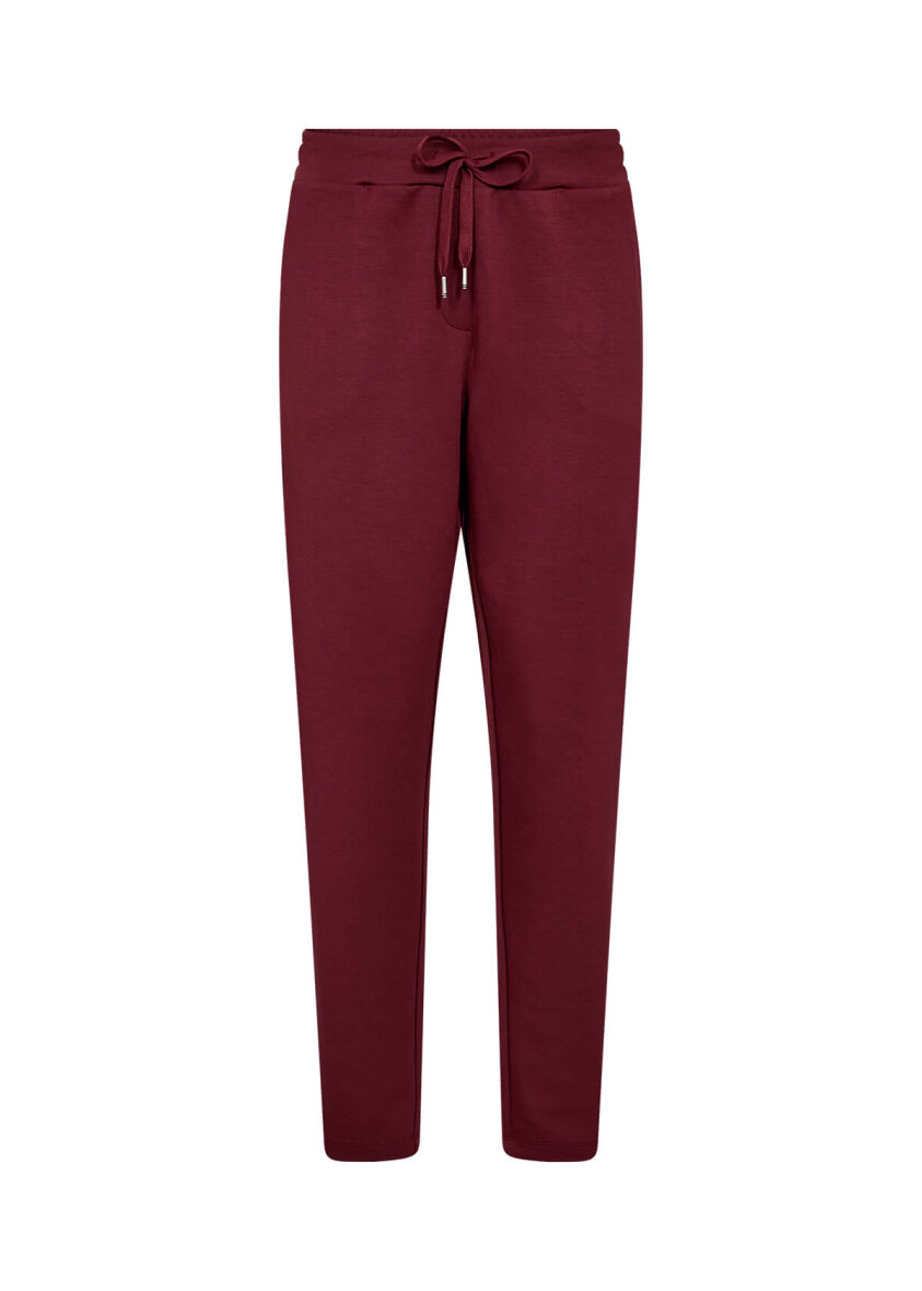 Komfortable sweatbukser i en flot vinrød farve fra Soyaconcept. Buksen er lavet i en skøn blanding af materialer, som giver en dejlig blød kvalitet og behagelige at have på.