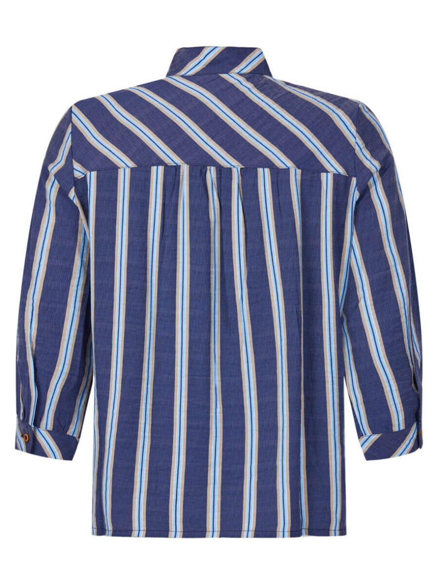 Brandtex skjorte i et flot og moderne stribet design og farvekombination. Den mørkeblå skjorte er med blå og brun stribet design.