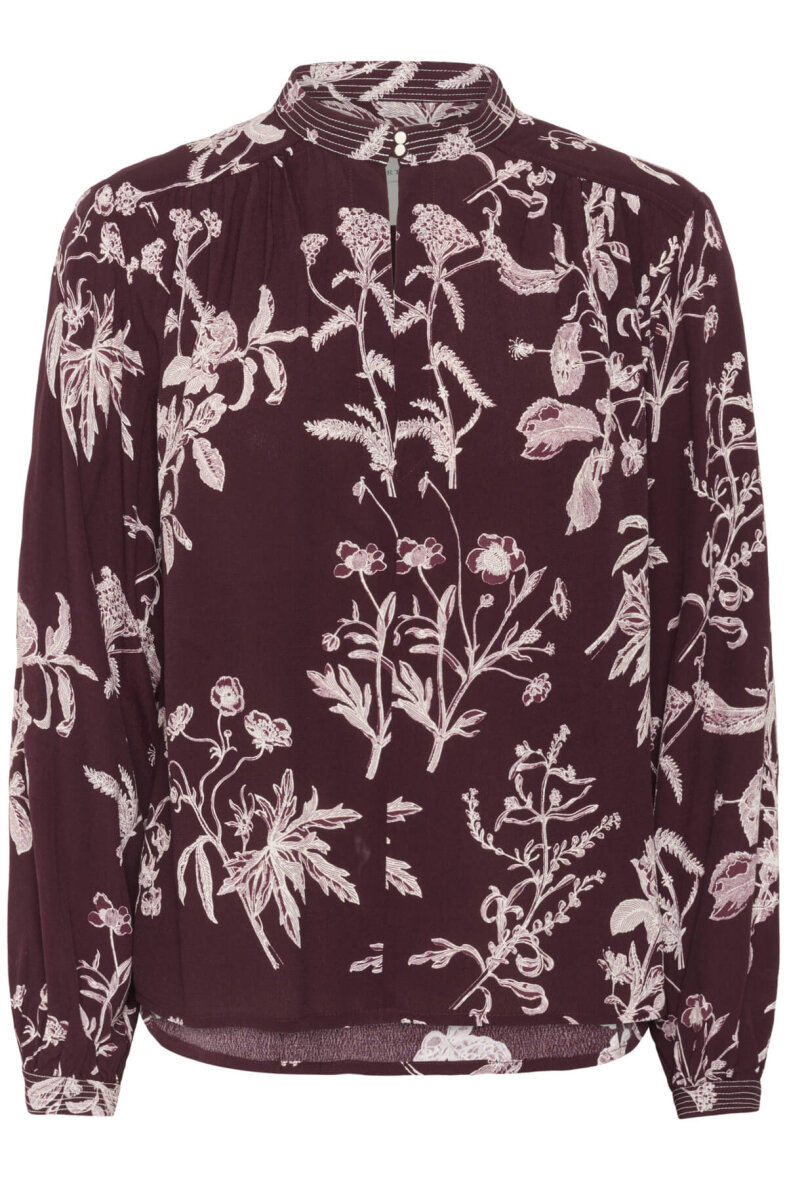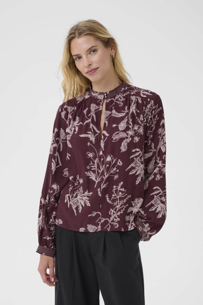 Flot og feminin bluse i en moderne vinrød farve fra Part Two. Blusen er i et fint blomstret print.