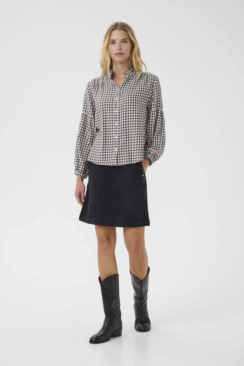 Part Two skjorte i et moderne ternet print i mørkeblå og hvide tern.