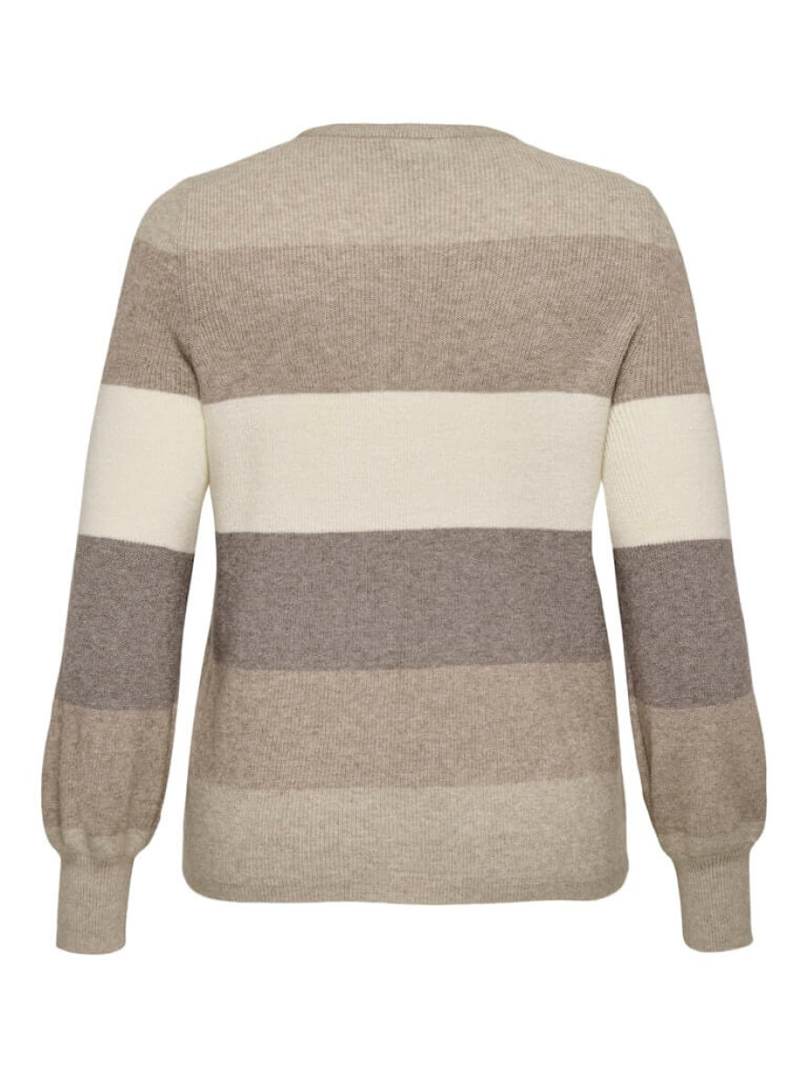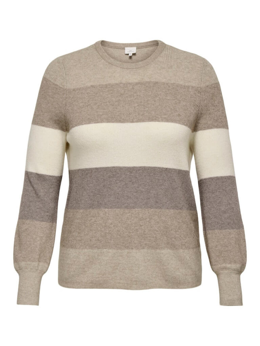 ONLY Carmakoma striktrøje i et flot og moderne stribet design. Striktrøjens striber er i en skøn kombination af sandfarvet nuancer, som passer perfekt til sæsonens farvepalet.