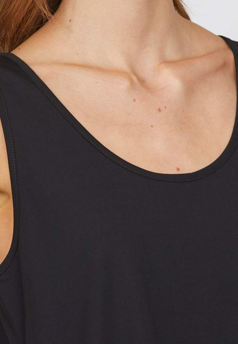Toppen er med dyb udskæring foran og bagpå med brede stropper.