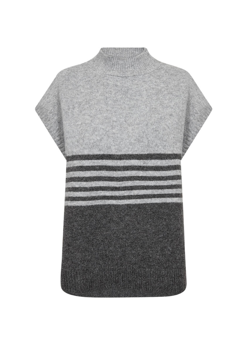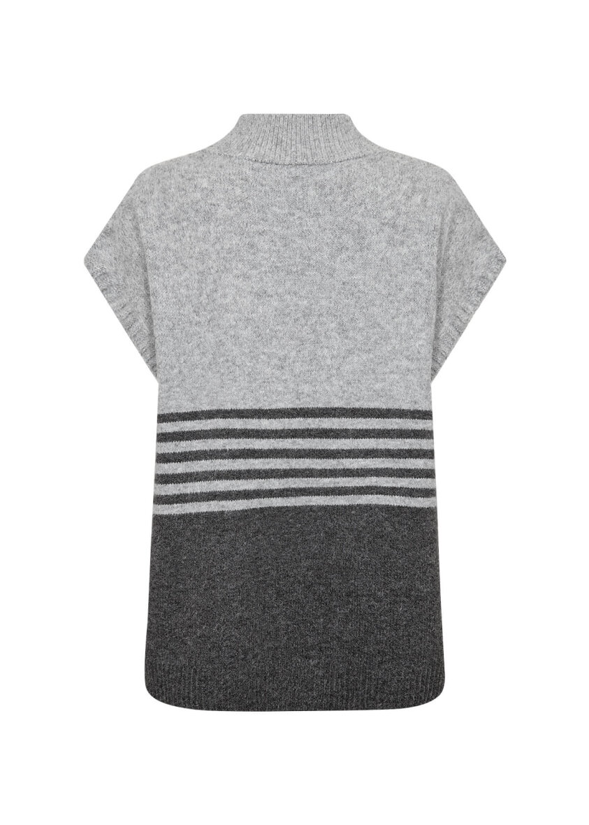 Soyaconcept strikket vest i modellen Selvi, er lavet i en skøn farvekombination af lysegrå og mørkegrå.