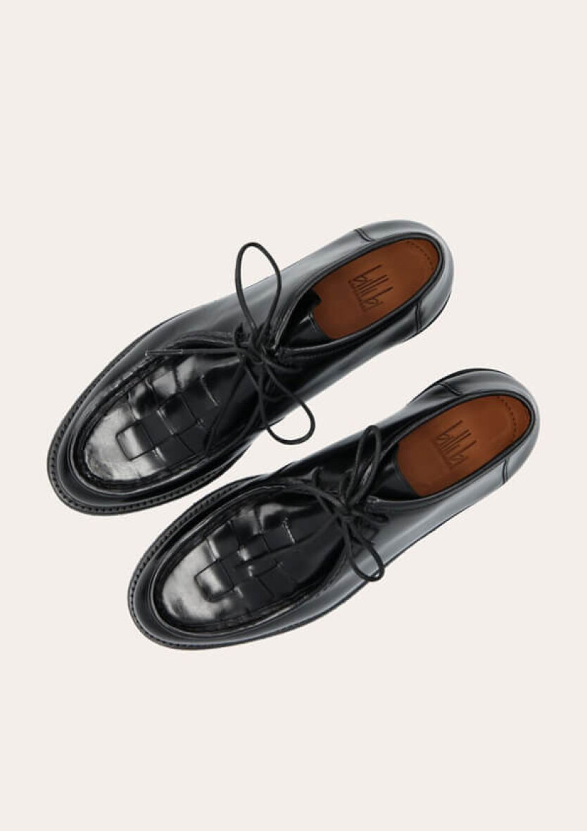 Denne moderne sko er lavet med fine vævede detaljer foran og stikninger langs fronten, som giver et smart look.