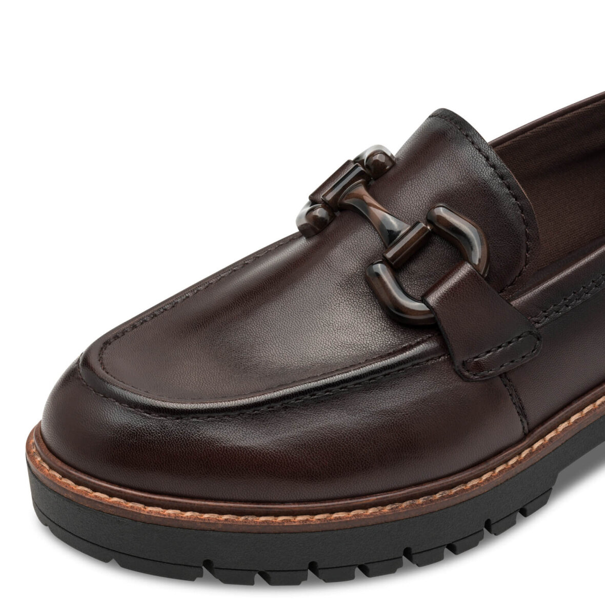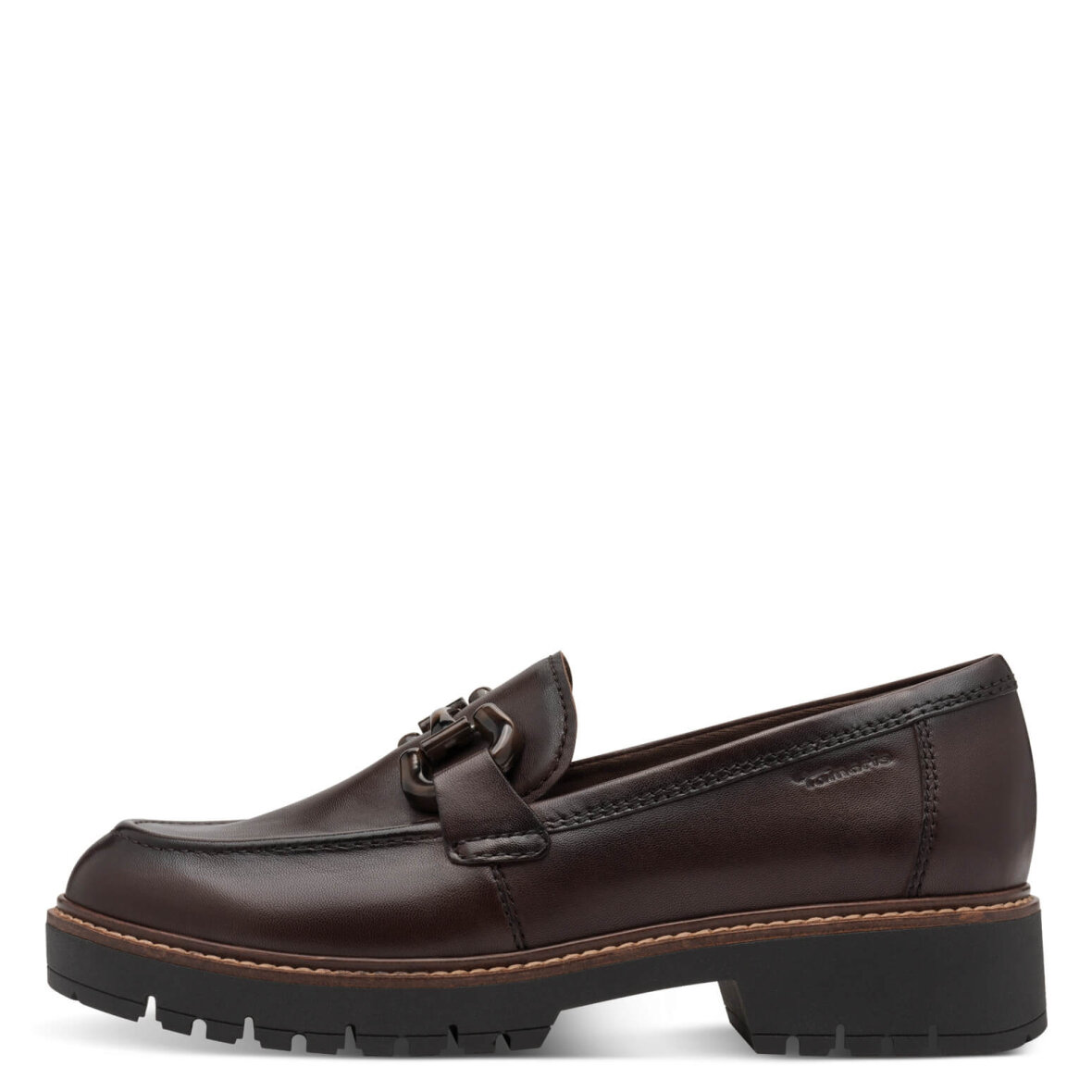 Tamaris loafers i en flot og moderne mocca farve. Skoen er lavet i en lækker læder kvalitet og en dekorativ spænde over vristen.