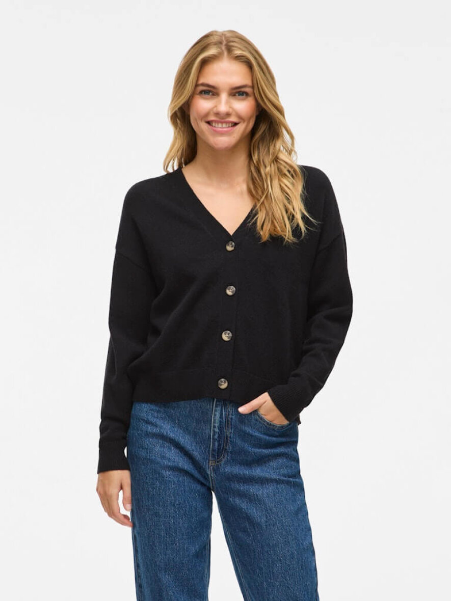 En sort cardigan passer til alt og alle lejligheder. Brug den som et let lag på arbejdet eller til afslappede dage derhjemme. Klassisk, komfortabel og altid stilfuld – et uundværligt basisstykke i garderoben.