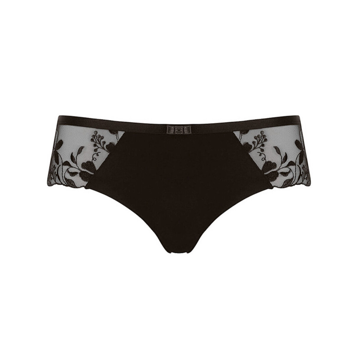 Super flot Hipster trusse fra Triumph Sexy Angel Spotlight serien. Hipster trussen er med et lavt talje snit og brede sidepartier. Der er sat det smukkeste blomstremønstret tyl i hoftesektionen hvilket giver et meget sensuelt udtryk. Med behagelige bløde laserskåret kanter.