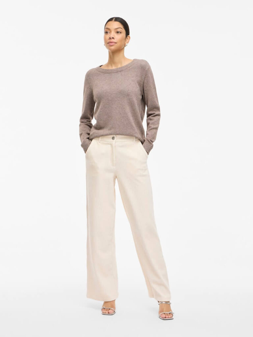 Vila striktrøje i en flot lys brun meleret farve. Den lysebrune strik er lavet i en lækker blød kvalitet, som er yderst behagelig at have på.