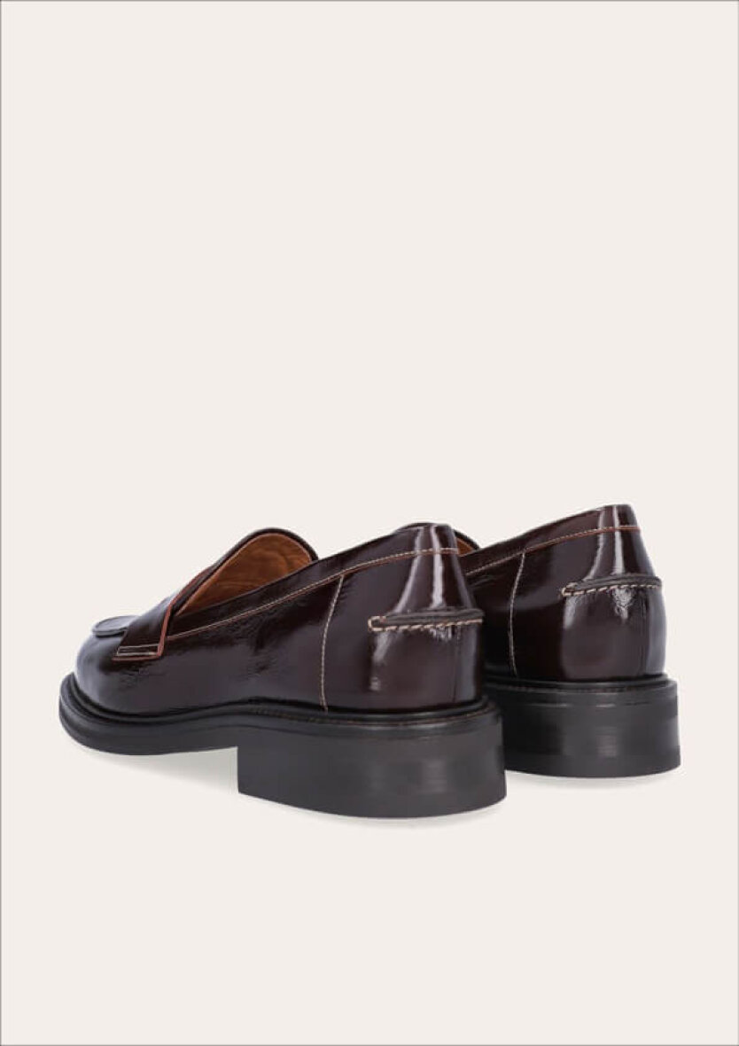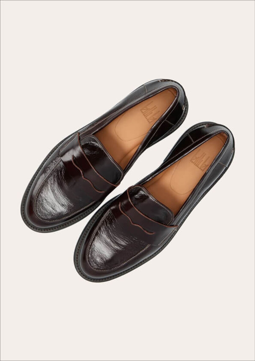 Billi bi loafers i glansfuldt kastanje-bordeaux skind, som passer perfekt i efterårssæsonen. Håndlavet loafer udført i skind både udenpå og indeni og vil derfor forme sig efter lige netop din fod ved brug.