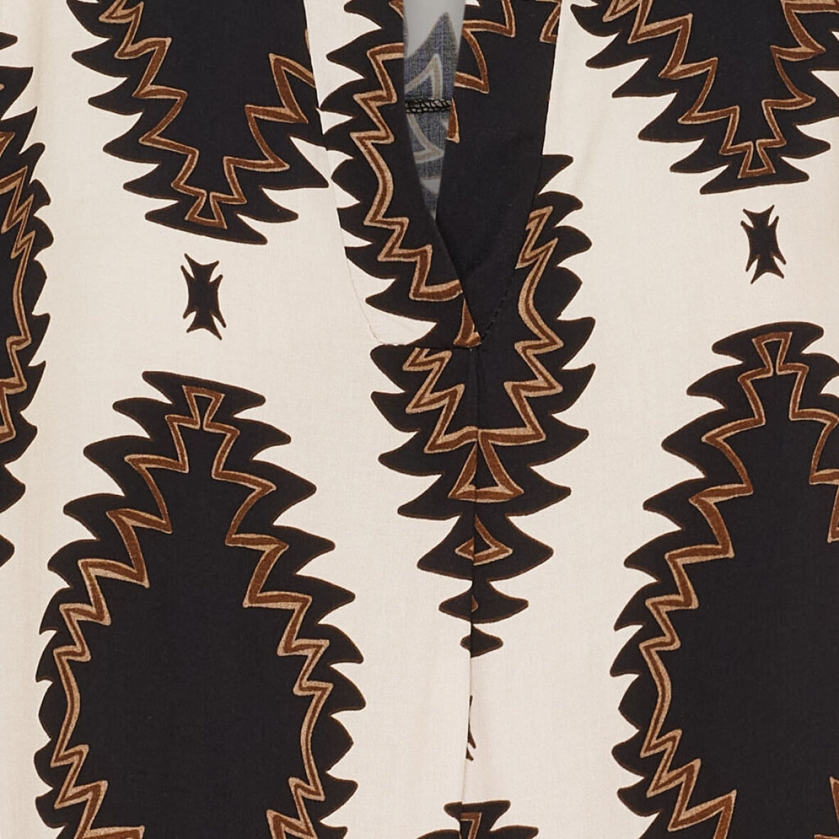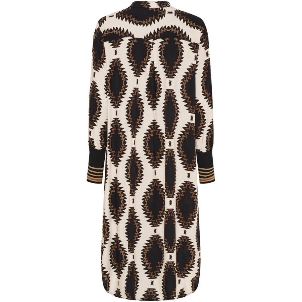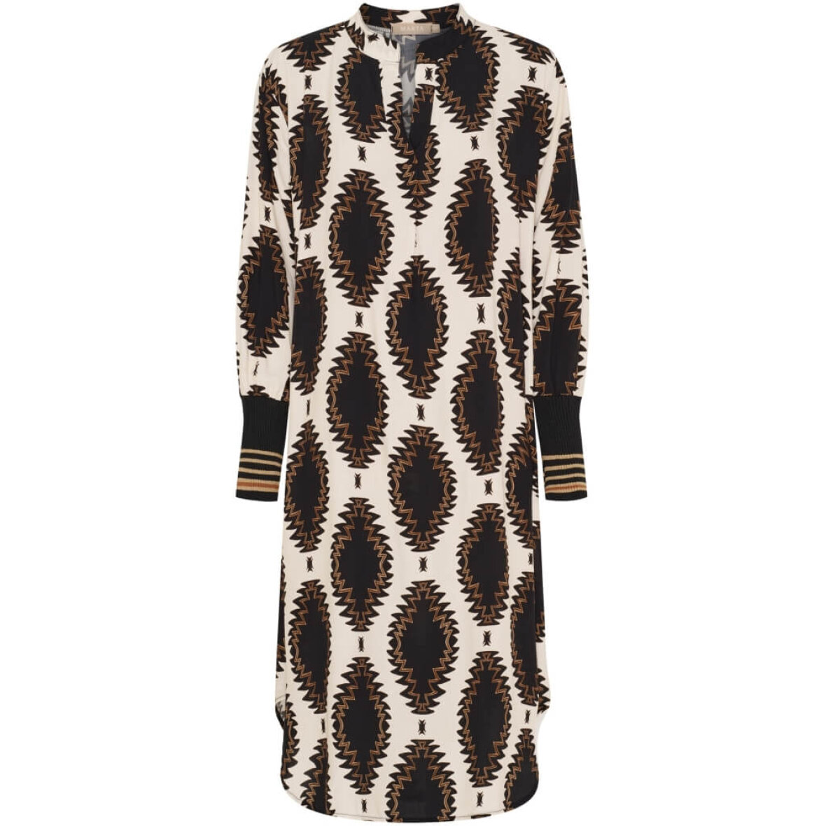 Flot lang kjole fra Marta Du Chateau, designet i et moderne print, der tilfører kant og personlighed til dit look. Kjolen har en flatterende V-udskæring med stolpeluk, som danner en lille læg.