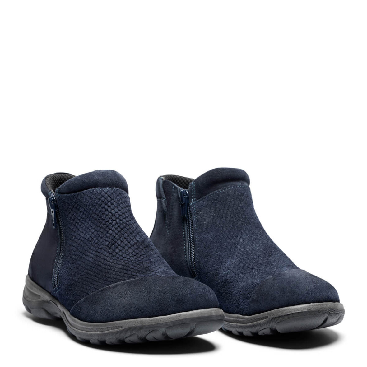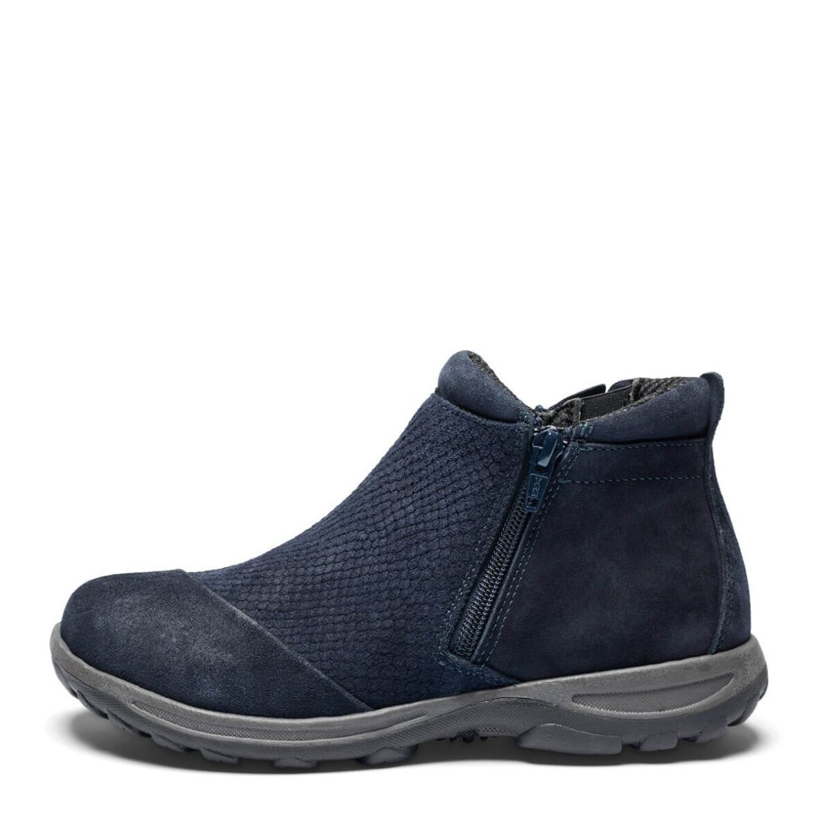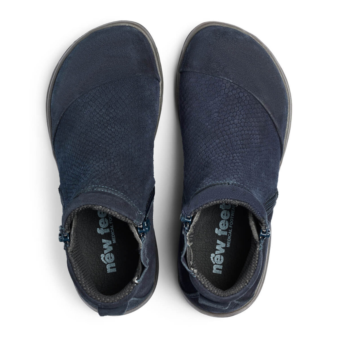 New Feet ankelstøvler i en flot navy blå farve. Støvlen er lavet i en lækker ruskindskvalitet, med struktur på overdelen, hvilket er med til at give et flot design,