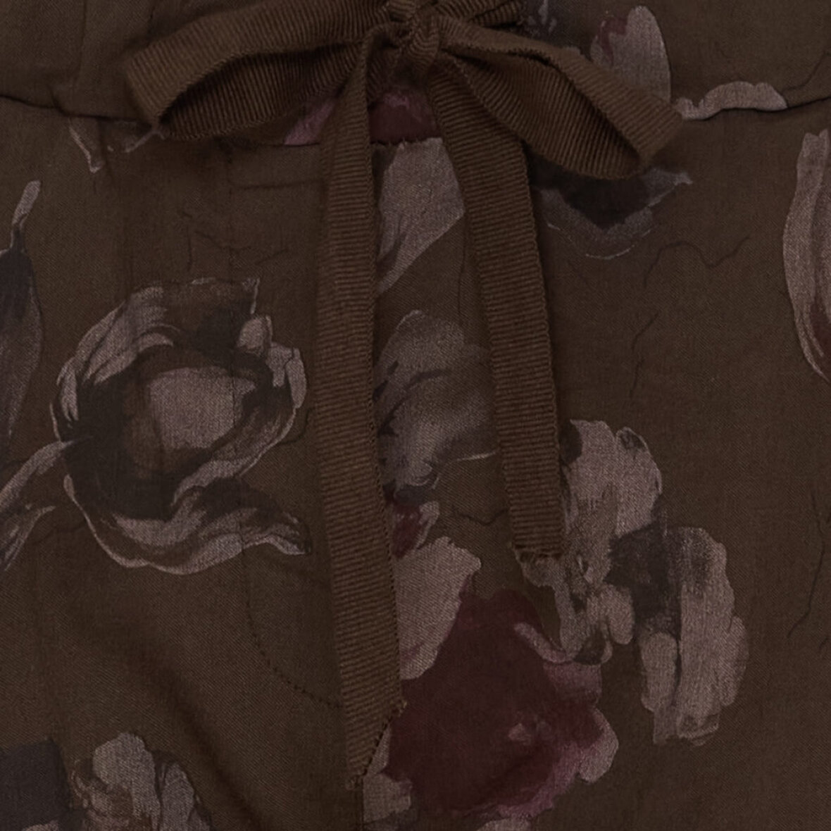 Smart 7/8 buks fra Marta du Chateau. Den mørkebrune buks er lavet i et flot og diskret blomsterprint i brune og bourdeux røde toner.