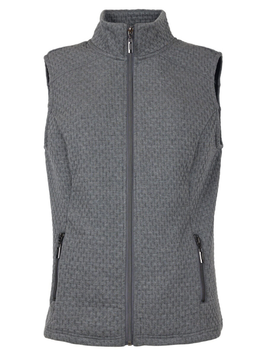 Dejlig blød vest fra Brandtex i en flot og alsidig grå farve. Vesten er lavet i et tidsløst design med let struktur i designet, som er nem at style med diverse forskellige overdele. Vesten er dejlig let og ideel til at give lidt ekstra varme. Style evt. som lag på lag med en trøje under.