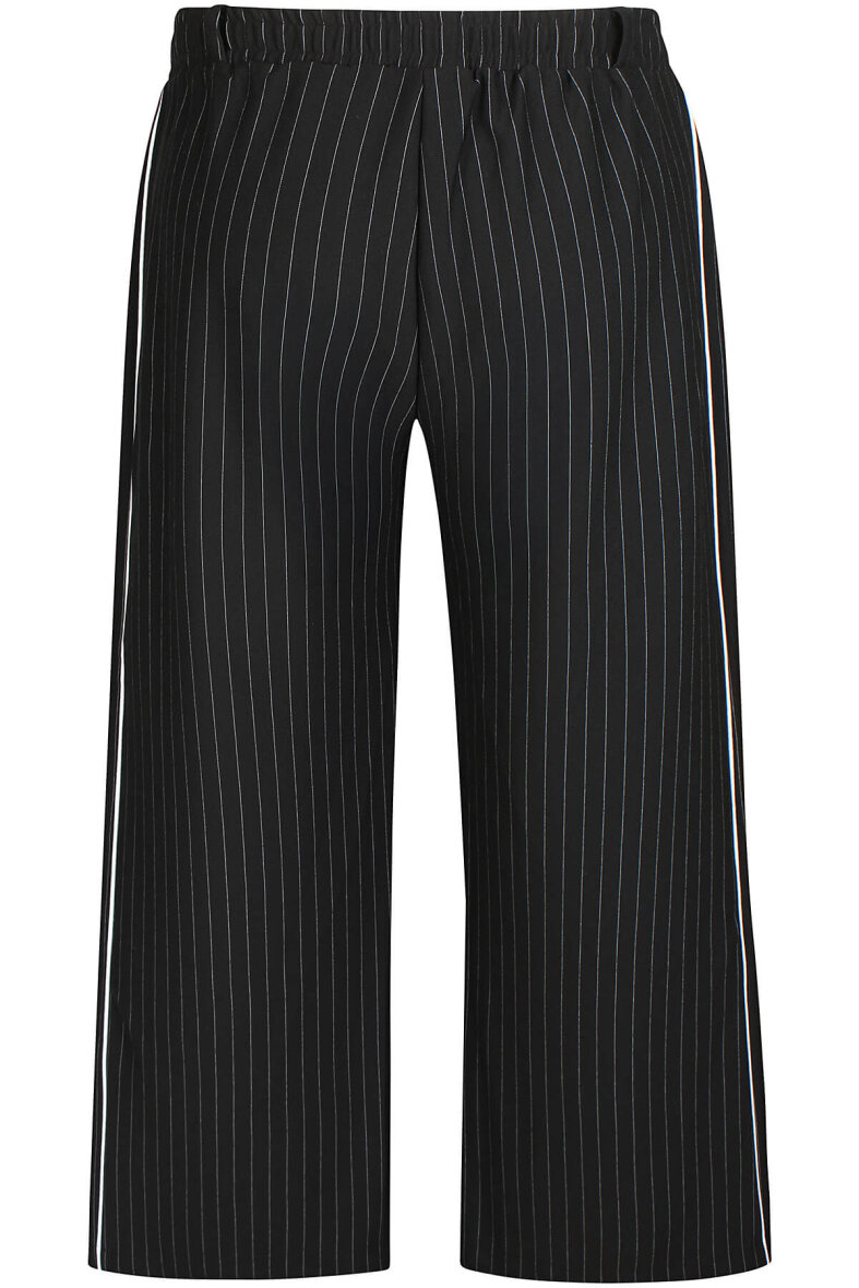 Zhenzi buks i modellen SAMA. Et par flotte og moderne sorte bukser i et hvid stribet design, med smalle lodrette striber og to bredere hvide kanter på siden - hvilket er med til at skabe et sporty look.