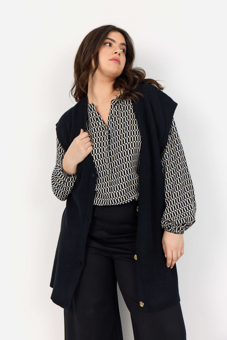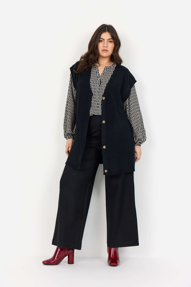 En flot og alsidig lang vest i en flot og enkelt design, som nemt kan styles for sig selv eller over diverse overdele. Style evt. udenpå en skjorte eller basis bluse for et smart look.
