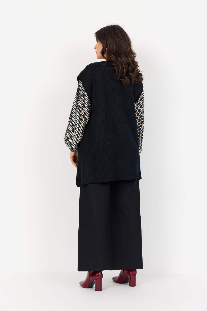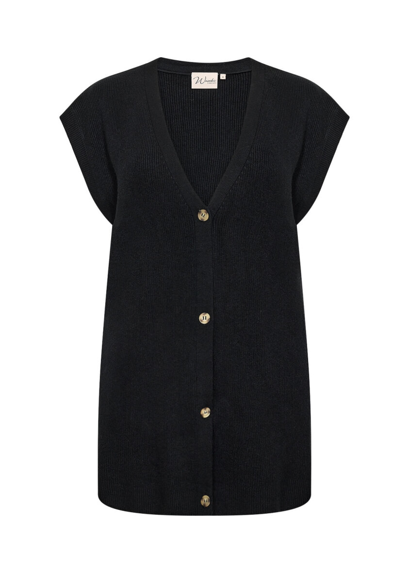 WasabiConcept lang strikket vest i en klassisk sort farve og lækker ribbet kvalitet.