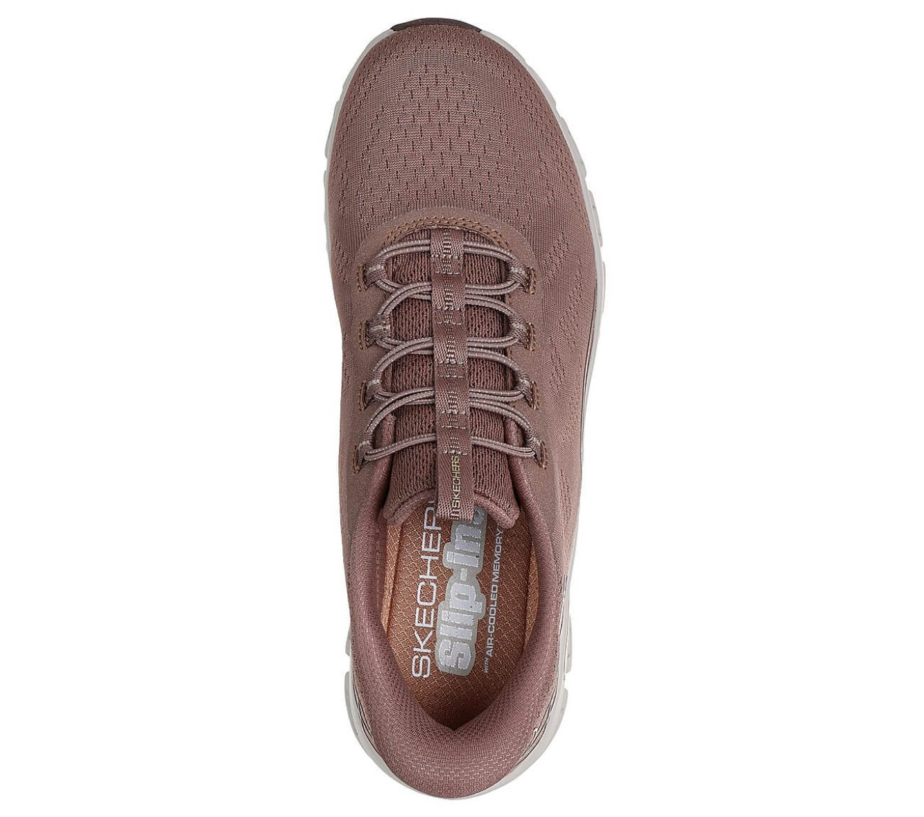 Med den smarte Slip-ins teknologi får du en sko med en god fast hælkappe og polstring der former sig til hælen og giver en god stabilitet. Skoen er lavet med et håndfrit hældesign, hvilket betyder at du kan træde ind i skoen uden at bruge dine hænder. Skoen har tilmed Skechers eksklusive Heel Pillow, som holder din fod sikkert på plads.