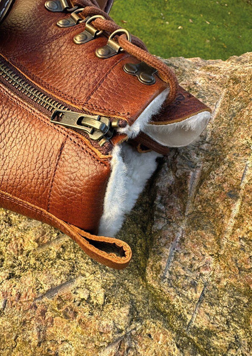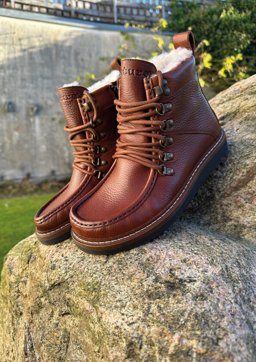 Nature Footwear støvler i modellen Gro. Støvlen er varmforet med 100 % ægte, kromfrit lammeskind, der sikrer optimal varme og åndbarhed, selv på de koldeste vinterdage.
