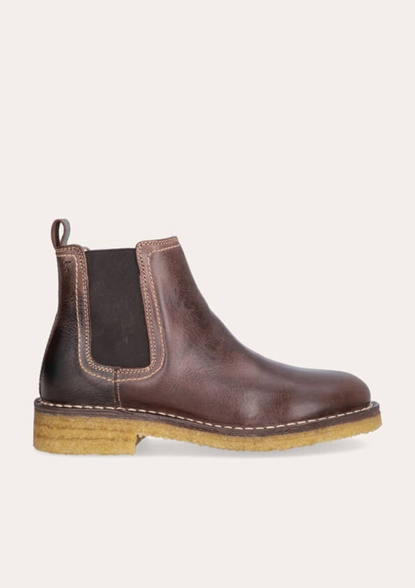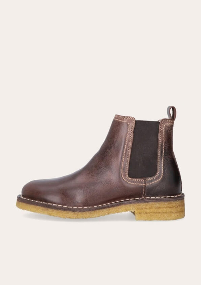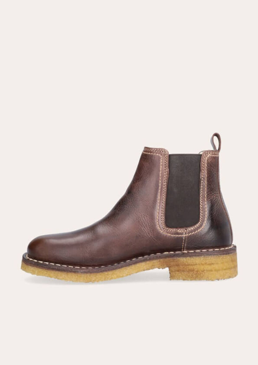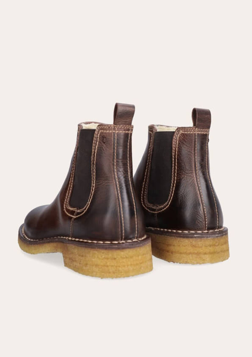 Designet er enkelt og tidløst, men med fine detaljer som en dekorativ strop bagpå og elastiske sidepaneler, der gør støvlen nem at tage af og på. Indvendigt er den foret med blød og varm uld, hvilket gør den perfekt til de kolde måneder.