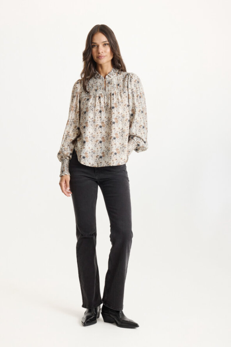 In Front bluse i en flot beige farve og det fineste natur print med forskellige blomster i rolige naturfarver.