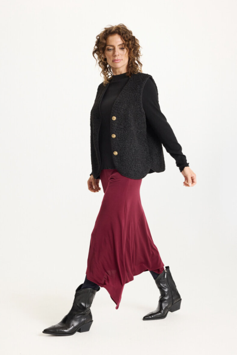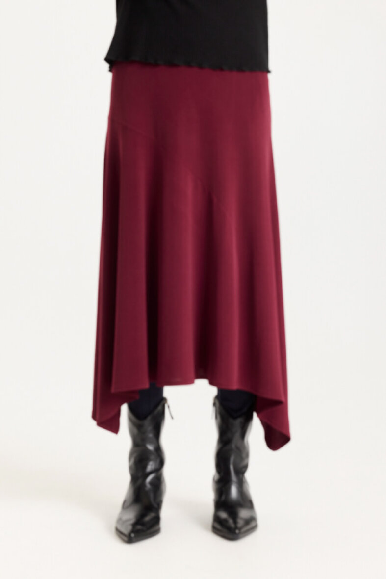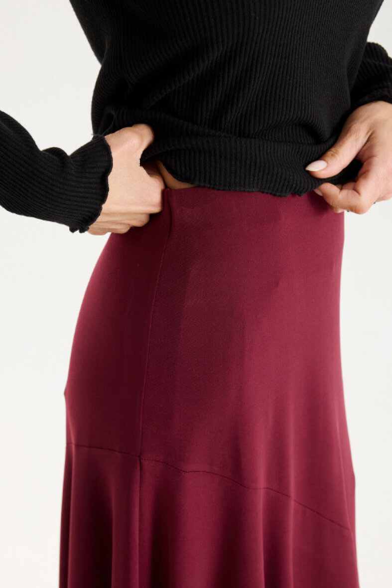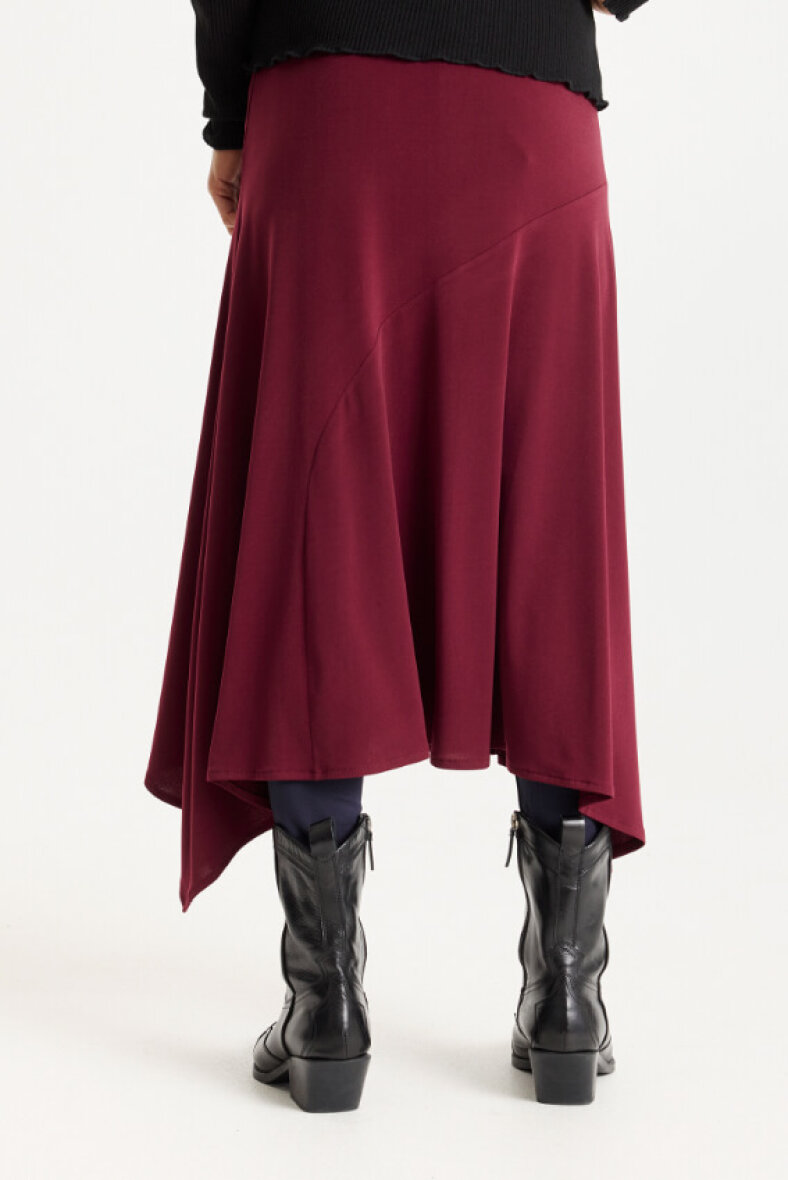 Den vinrøde nederdel i modellen Tina er i et flot og enkelt design med en rundet synings detalje.
