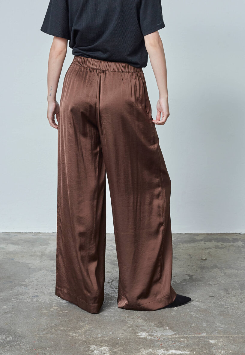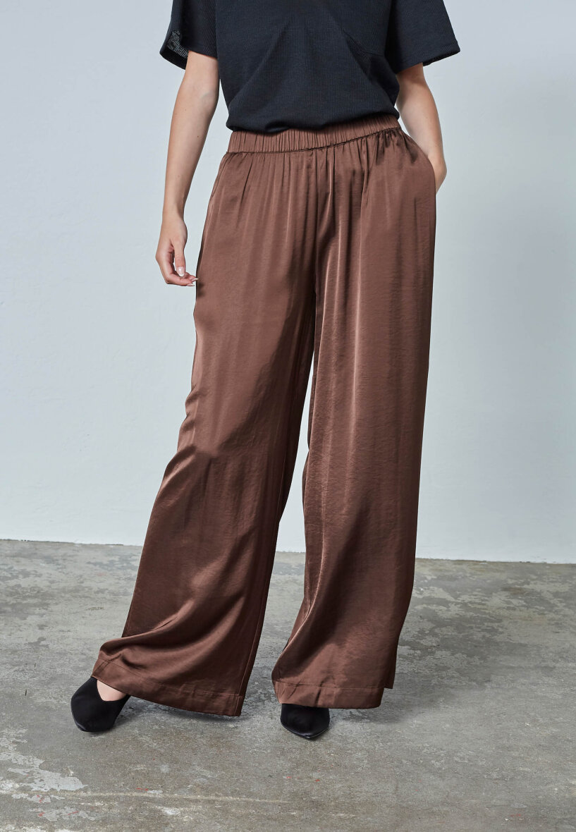 Love & Divine bukser i en flot og moderne mørkebrun farve. Buksen er lavet i en silkeblød kvalitet, som giver et fint fald og eksklusivt udtryk.
