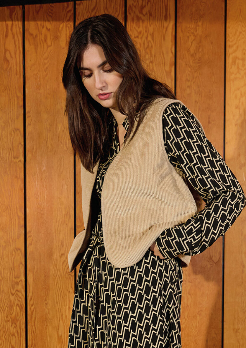 Skab et flot lag-på-lag look med Bindi vesten. Style evt. udenpå en flot bluse, kjole eller skjorte.