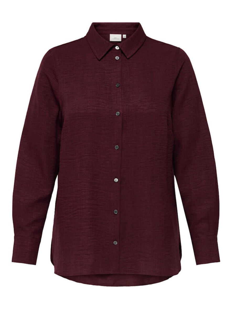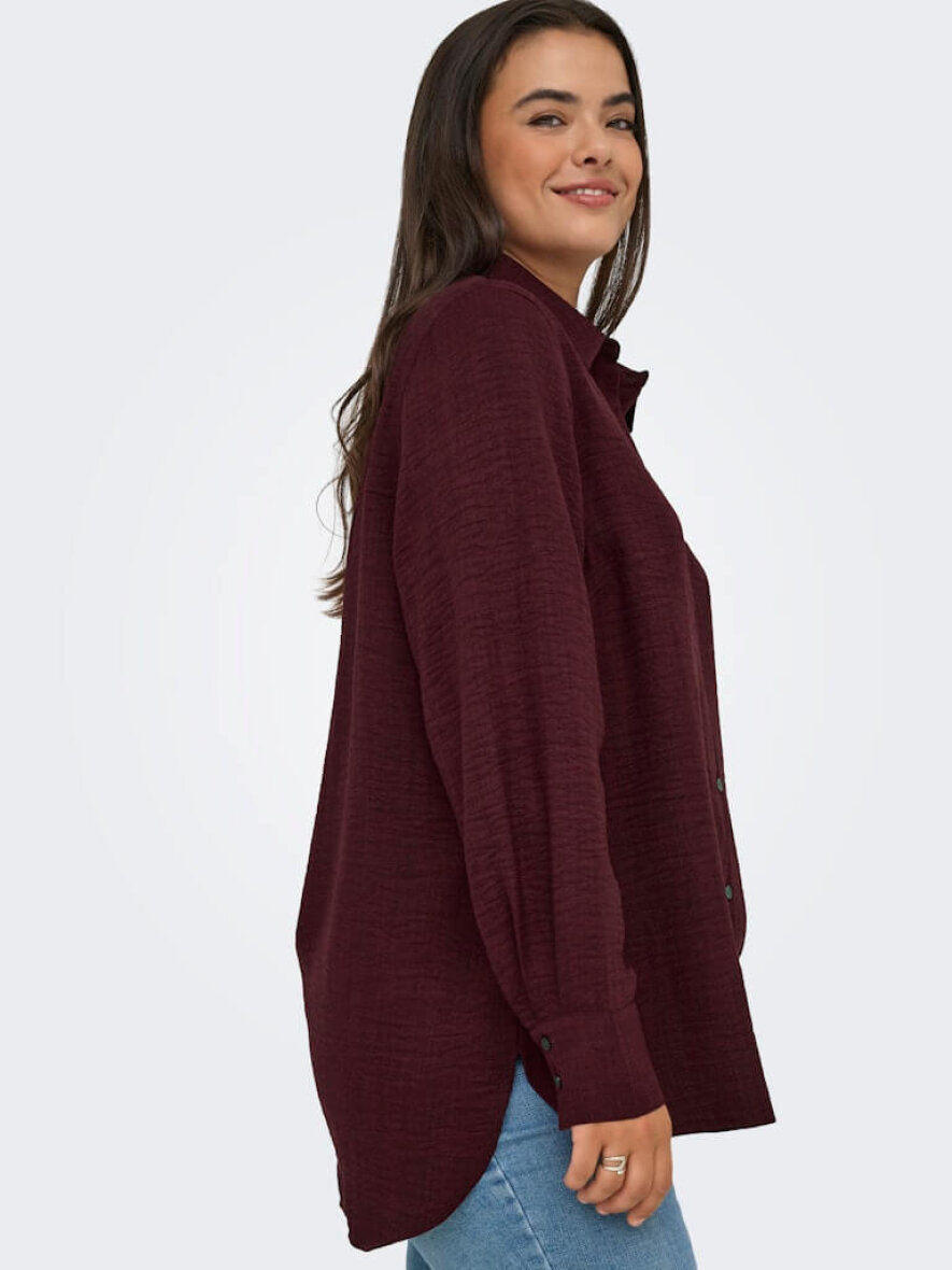 Flot og enkel skjorte i en fin og moderne vinrød farve fra ONLY Carmakoma. Skjorten er lavet i en let og luftig 100% Polyester kvalitet.