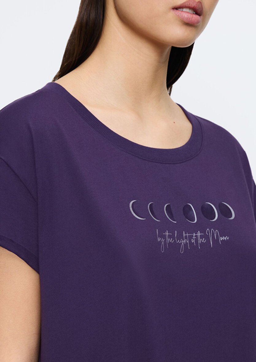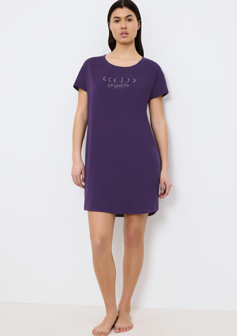 Triumph natkjole i en flot mørke lilla farve. Natkjolen er med tryk på brystet af forskellige månefaser med ordrerne "by the light og the moon" i sølv skrift.