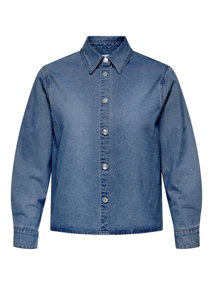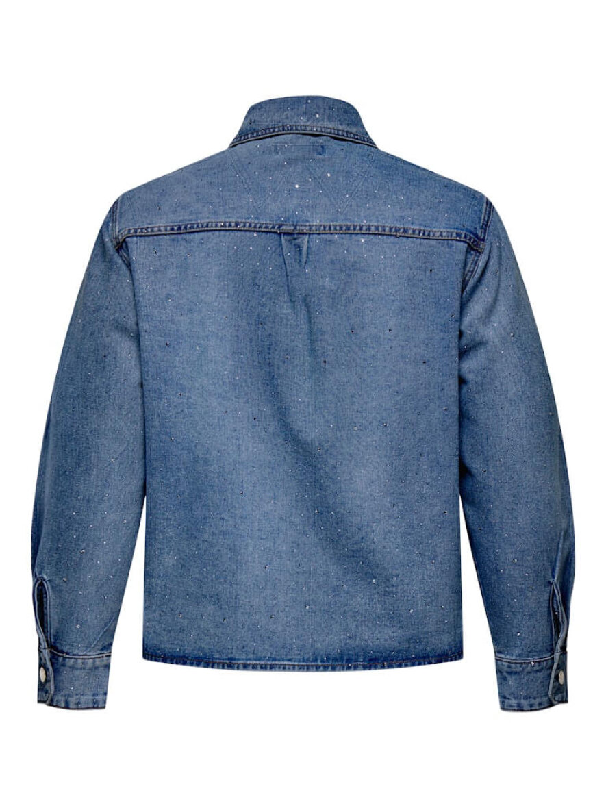 Only Carmakoma denimjakke i en alsidig medium blå denim med et flot twist af små glitrende similisten all-over.