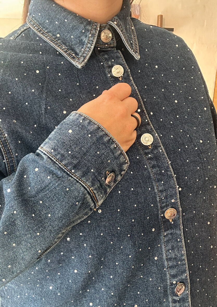 Smart og moderne statement denim jakke, som både kan bruges som jakke eller som en skjorte overdel. Style evt. med et par jeans eller nederdel og en basis t-shirt under, for et smart og iøjefaldende look.