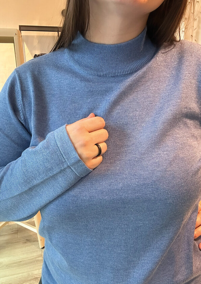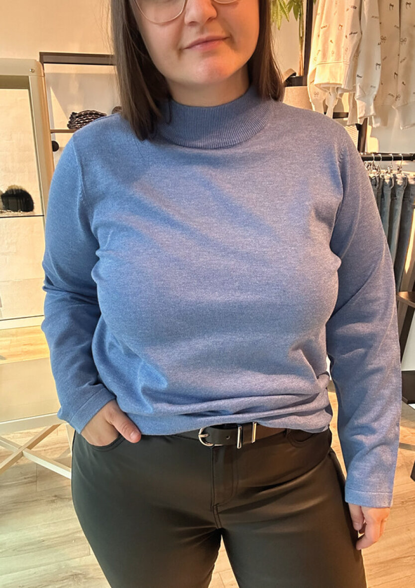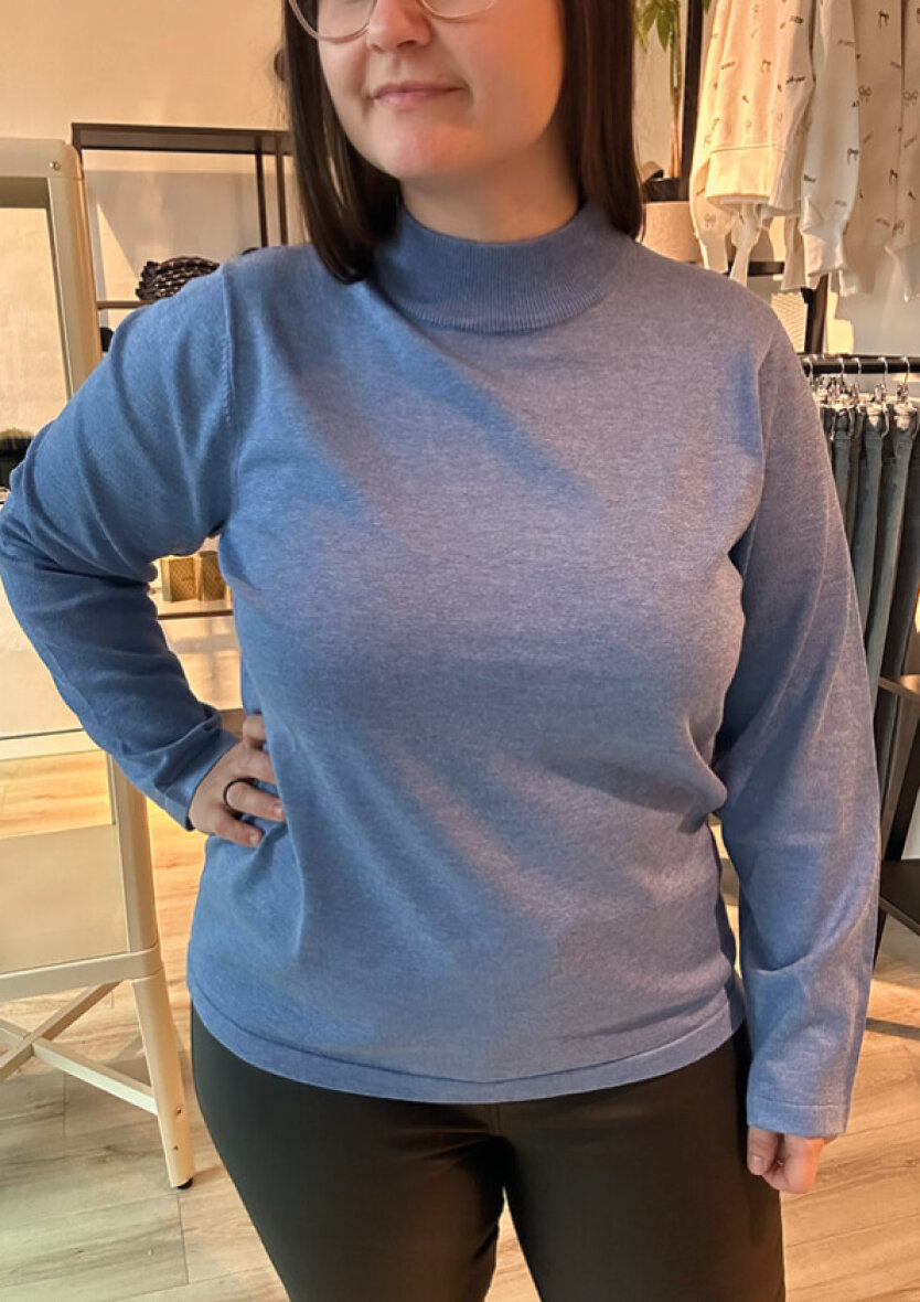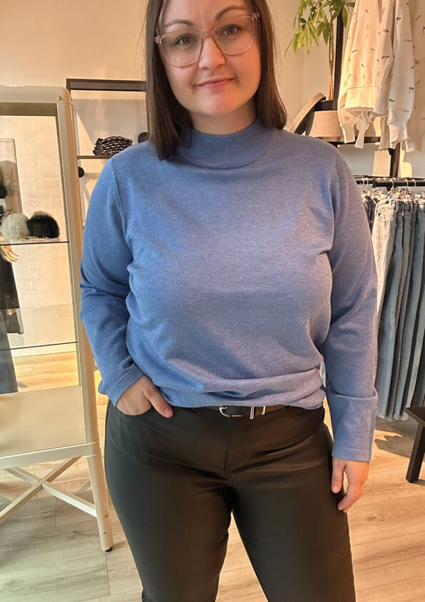 Signature strikbluse i en flot blå farve, som er nem at style med både cardigans, blazere, veste m.m.