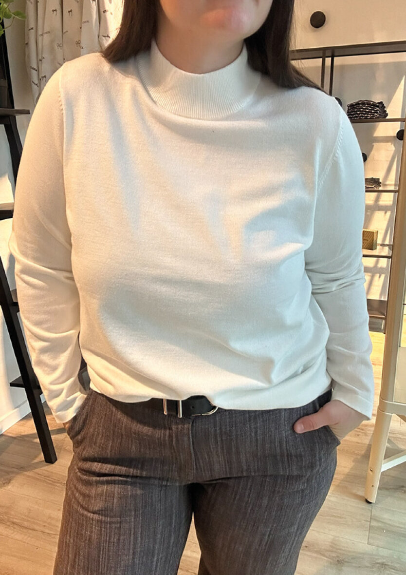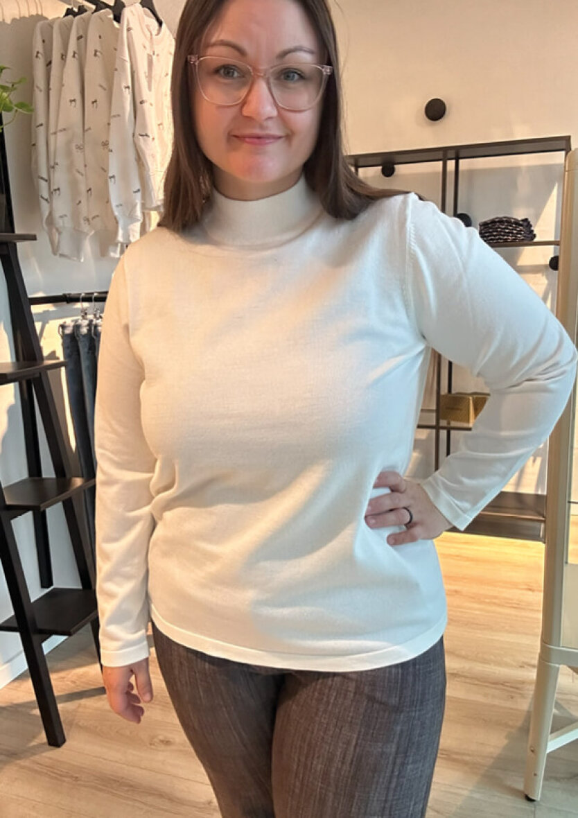 Signature strikbluse i en alsidig off white farve, som er nem at style med både cardigans, blazere, veste m.m.