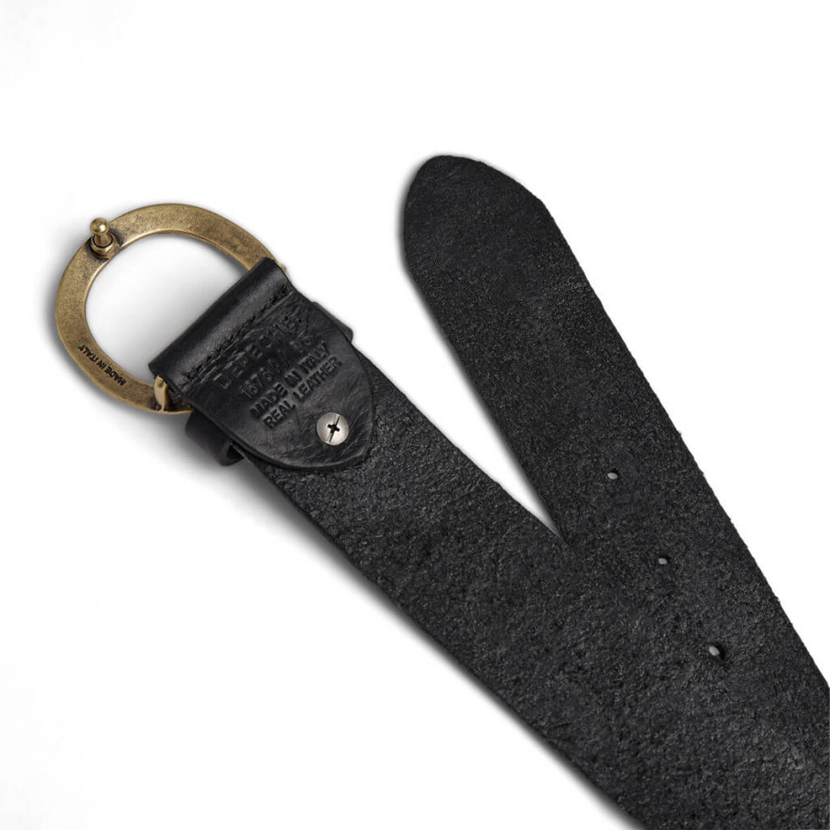 Dette Depeche bælte kombinerer klassisk stil med et moderne udtryk. Det runde guld spænde har en smuk, struktureret overflade, der tilføjer både eksklusivitet og personlighed – og giver bæltet et unikt og sofistikeret look.