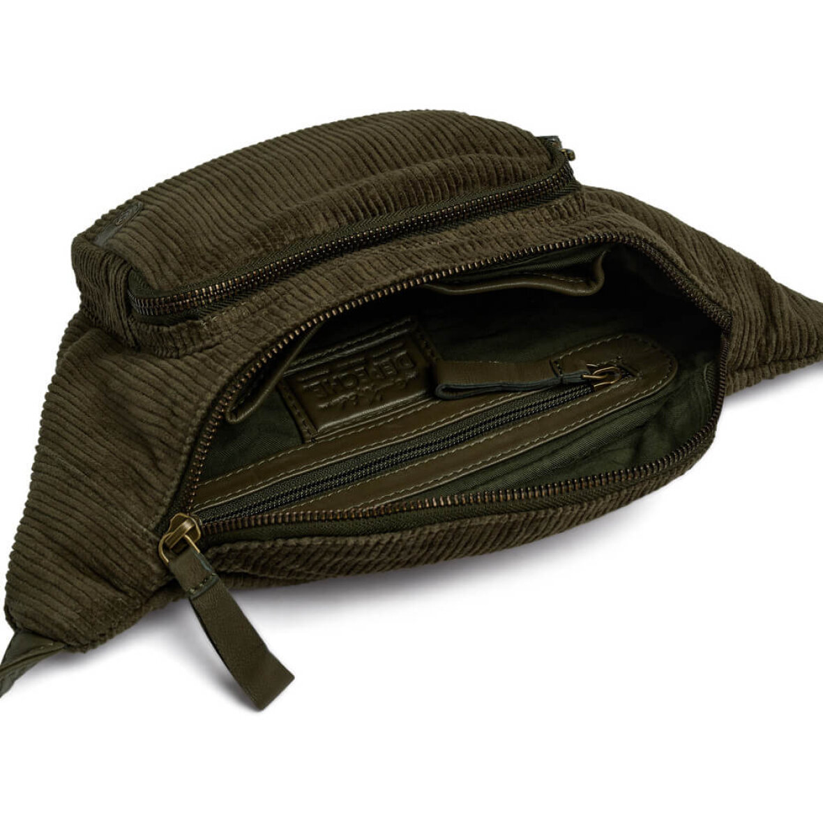Denne army grønne bumbag fra Depche i blød fløjl forener komfort, funktionalitet og stil i ét enkelt design. Den klassiske silhuet og det teksturerede materiale giver tasken et afslappet, men raffineret udtryk, der løfter ethvert outfit med et moderne twist.