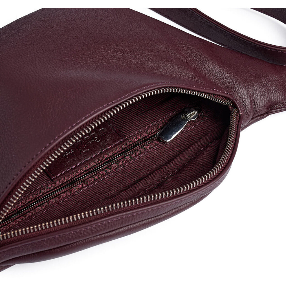 Elegant bumbag taske fra Depeche. Den er fremstillet i en lækker blød læder kvalitet i en moderne bordeaux rød farve.