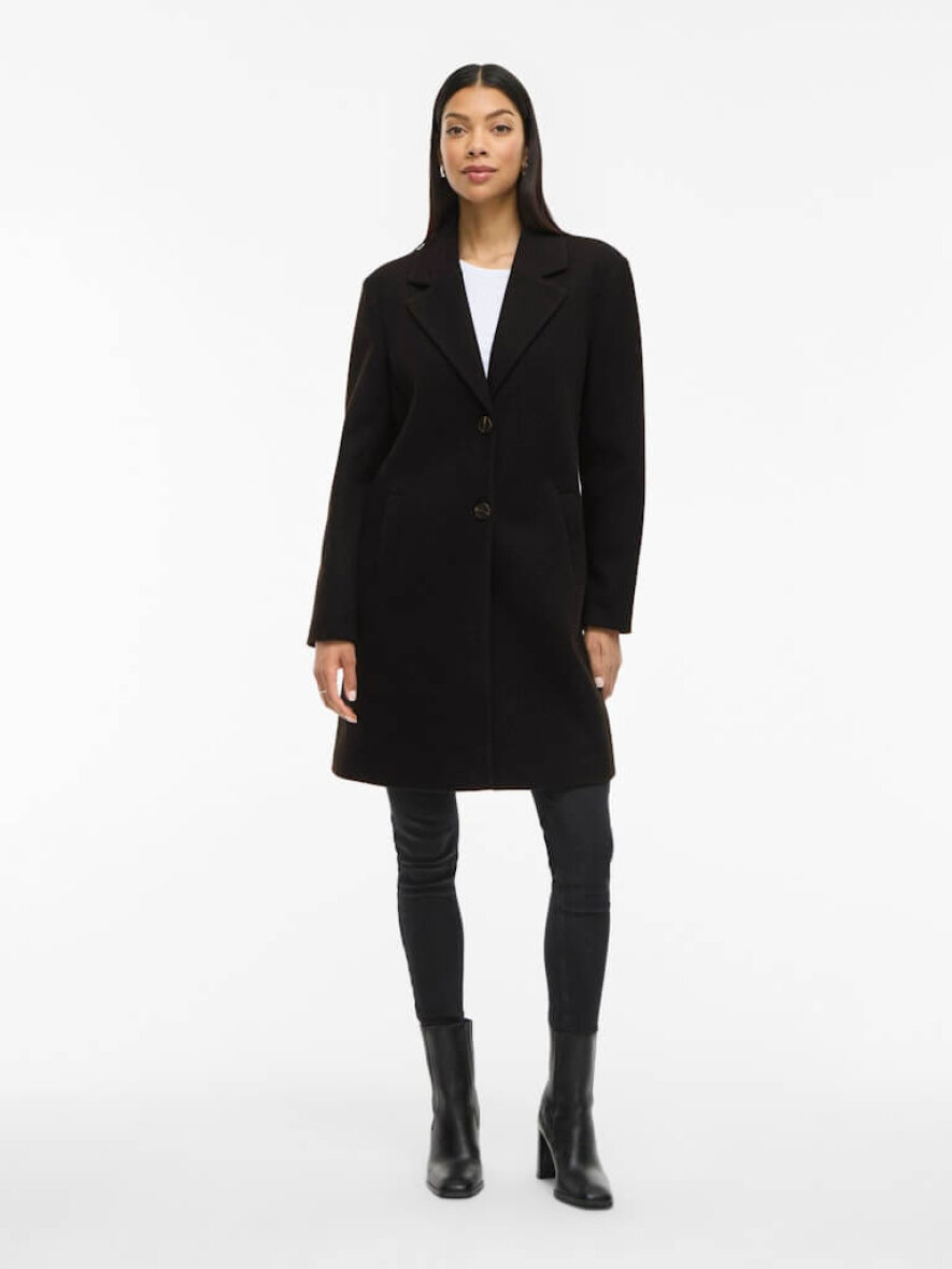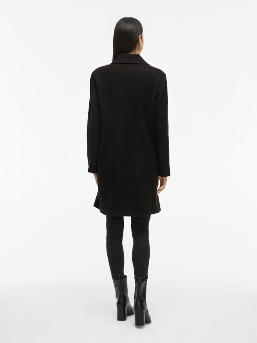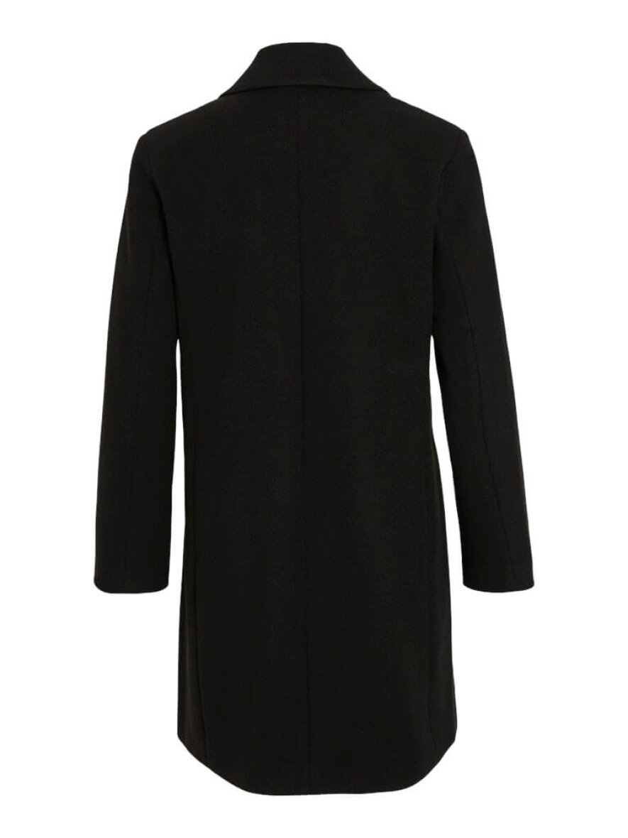 VILA frakke i sort er en stilren jakke designet i et blødt materiale og har en flatterende, reguler pasform.
