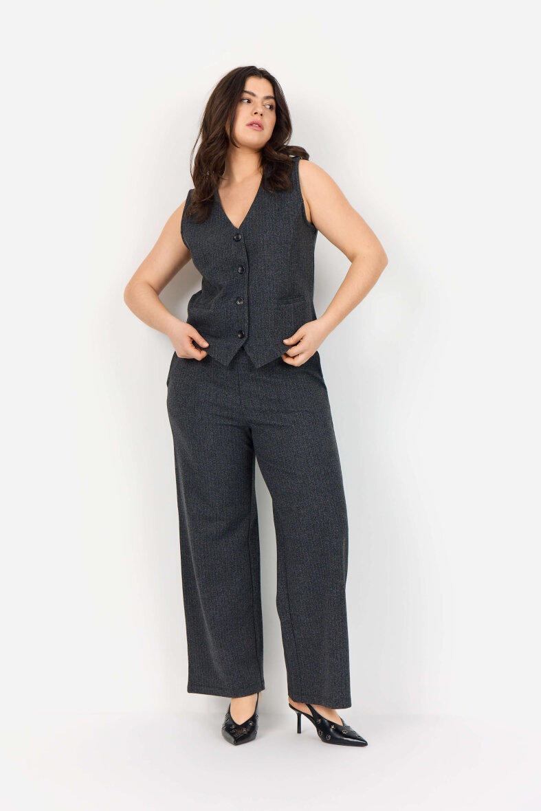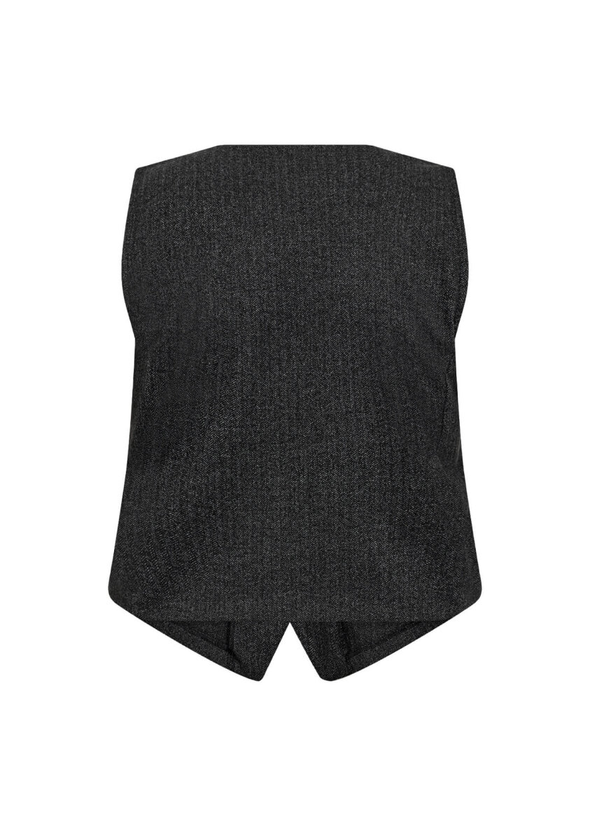 WasabiConcept vest i en flot grå meleret farve med diskret sildebensstruktur - et tidløst valg med et strejf af karakter. Vesten er med v-halsudskæring og lukkes med knapper foran. Med små åbne lommer foran.