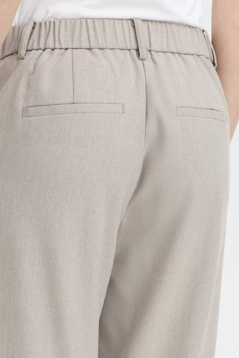 Buksen er med elastik i taljen bagpå og fast linning foran for et stilrent og elegant udtryk. Buksen lukkes med hægteluk og lynlås, som er skjult. Disse diskrete detaljer tilføjer et sofistikeret touch, og det rene design gør dem nemme at style med både skjorter, strik og blazere. Et godt basisstykke i enhver garderobe.